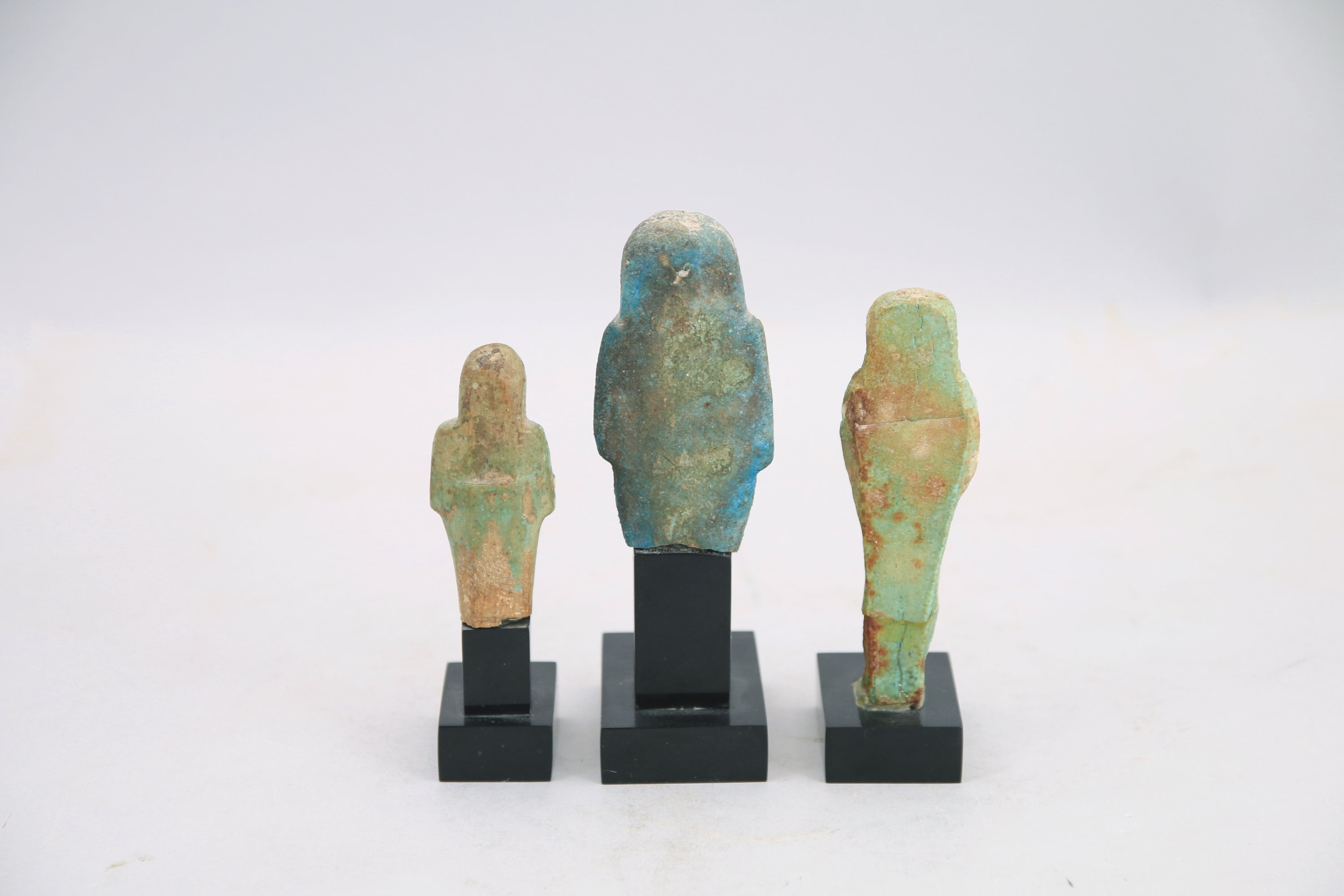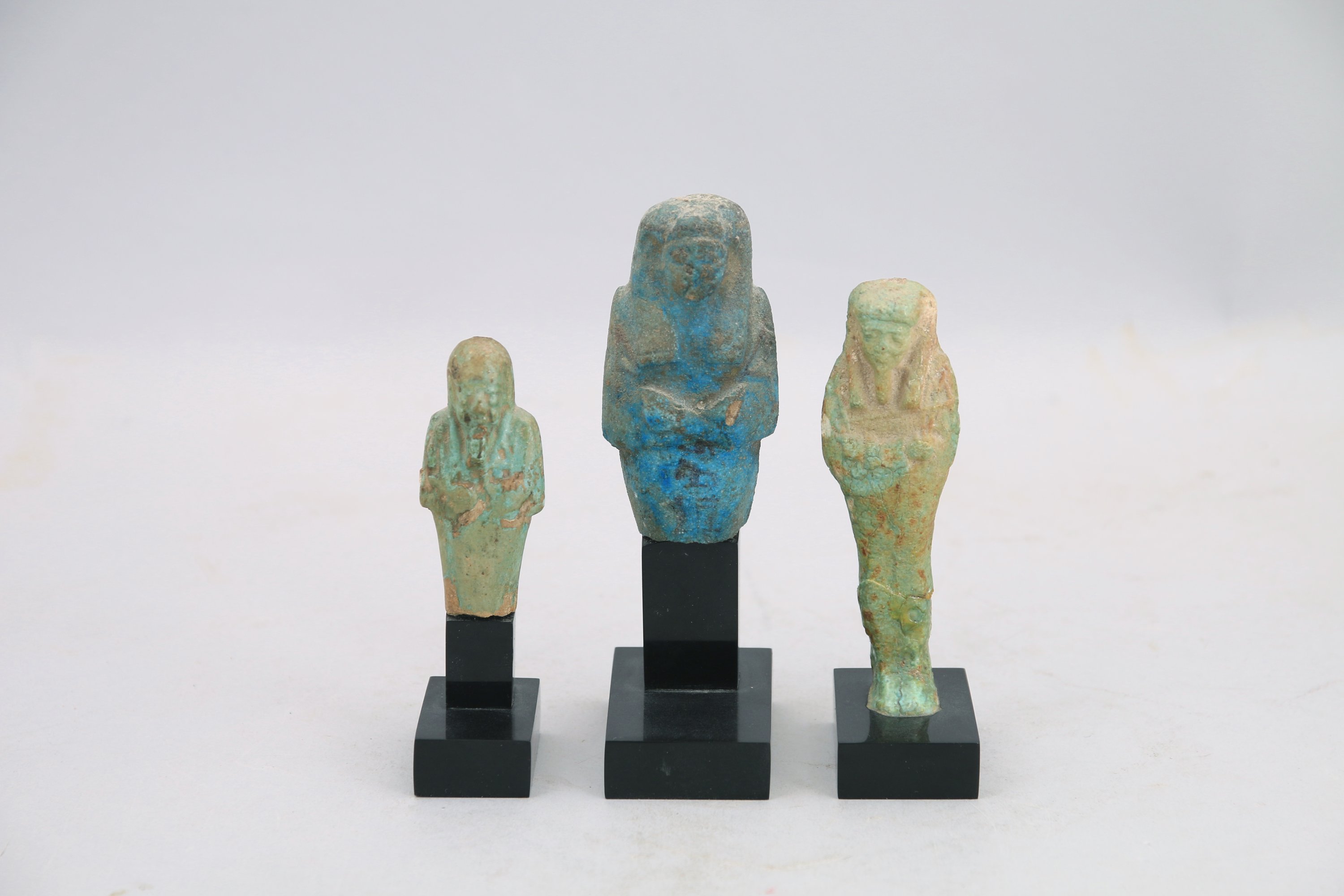 en faïence bleue, avec inscription et rehauts noirs. A rapprocher des découvertes des cachettes de Deir el-Bahari.