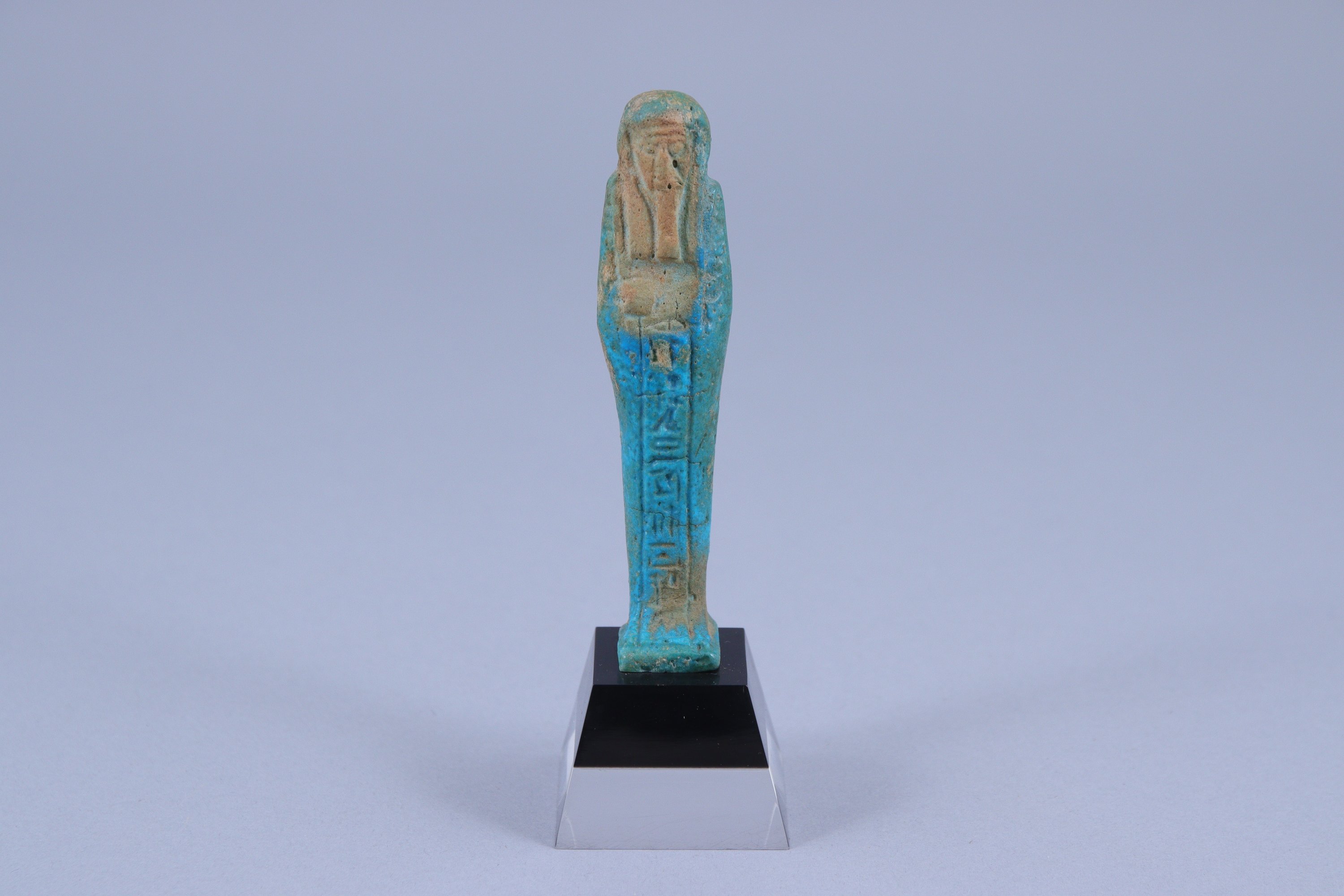 en fritte glaçurée bleue, avec colonne ventrale inscrite au nom de Psametik-séneb.