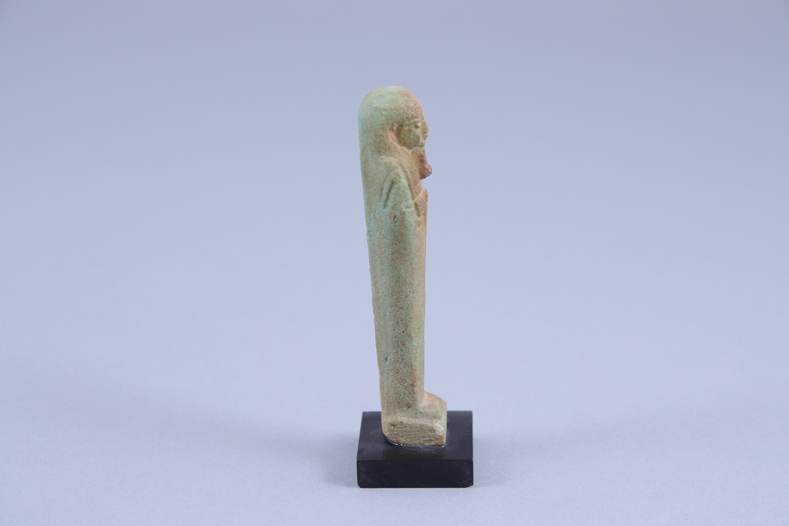 en fritte glaçurée verte. Lun comporte une inscription hiéroglyphique sur le pilier dorsal.