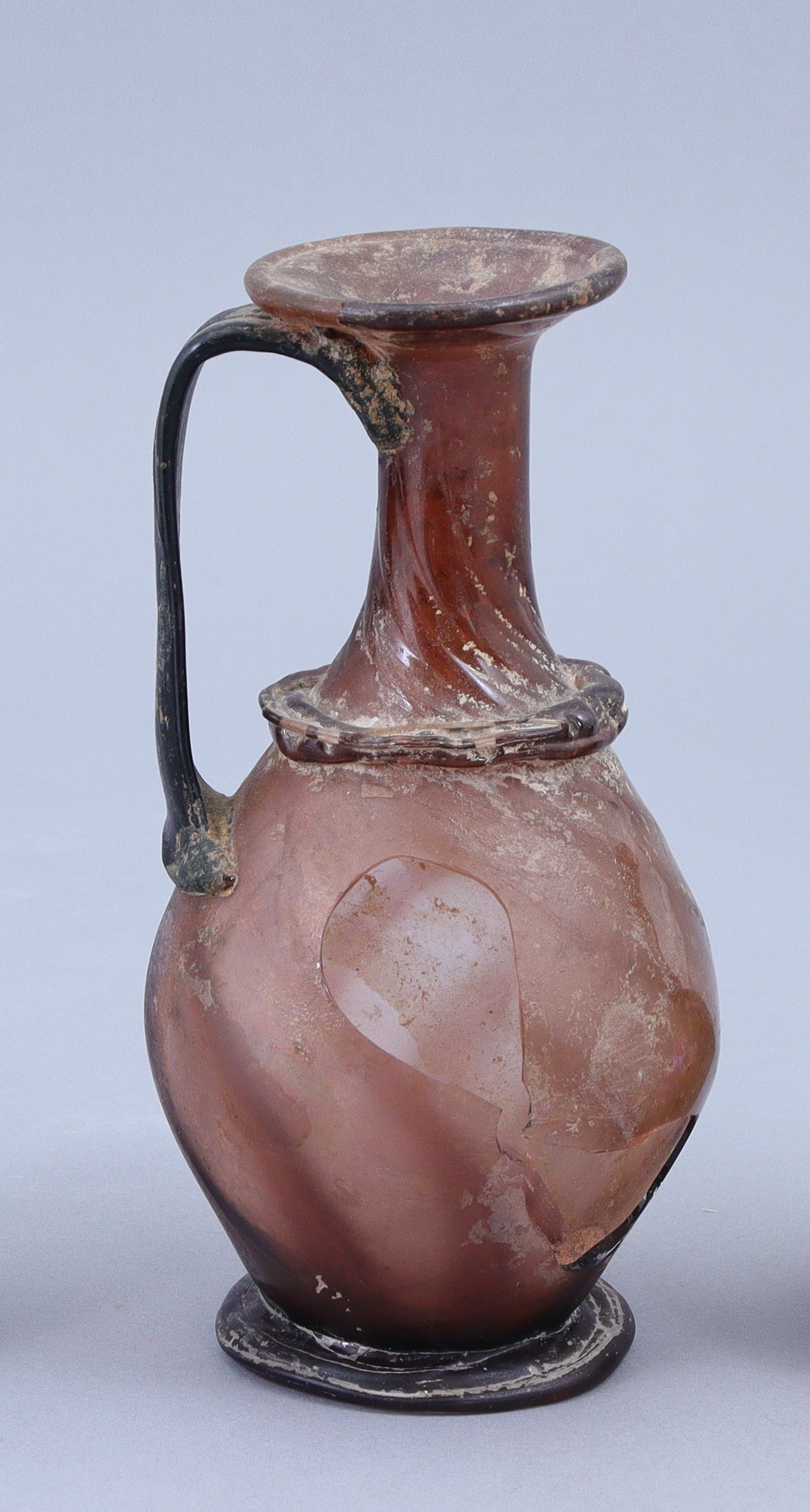 en verre, de couleur aubergine et noire pour lanse, décorée dune couronne annulaire sur lépaule.