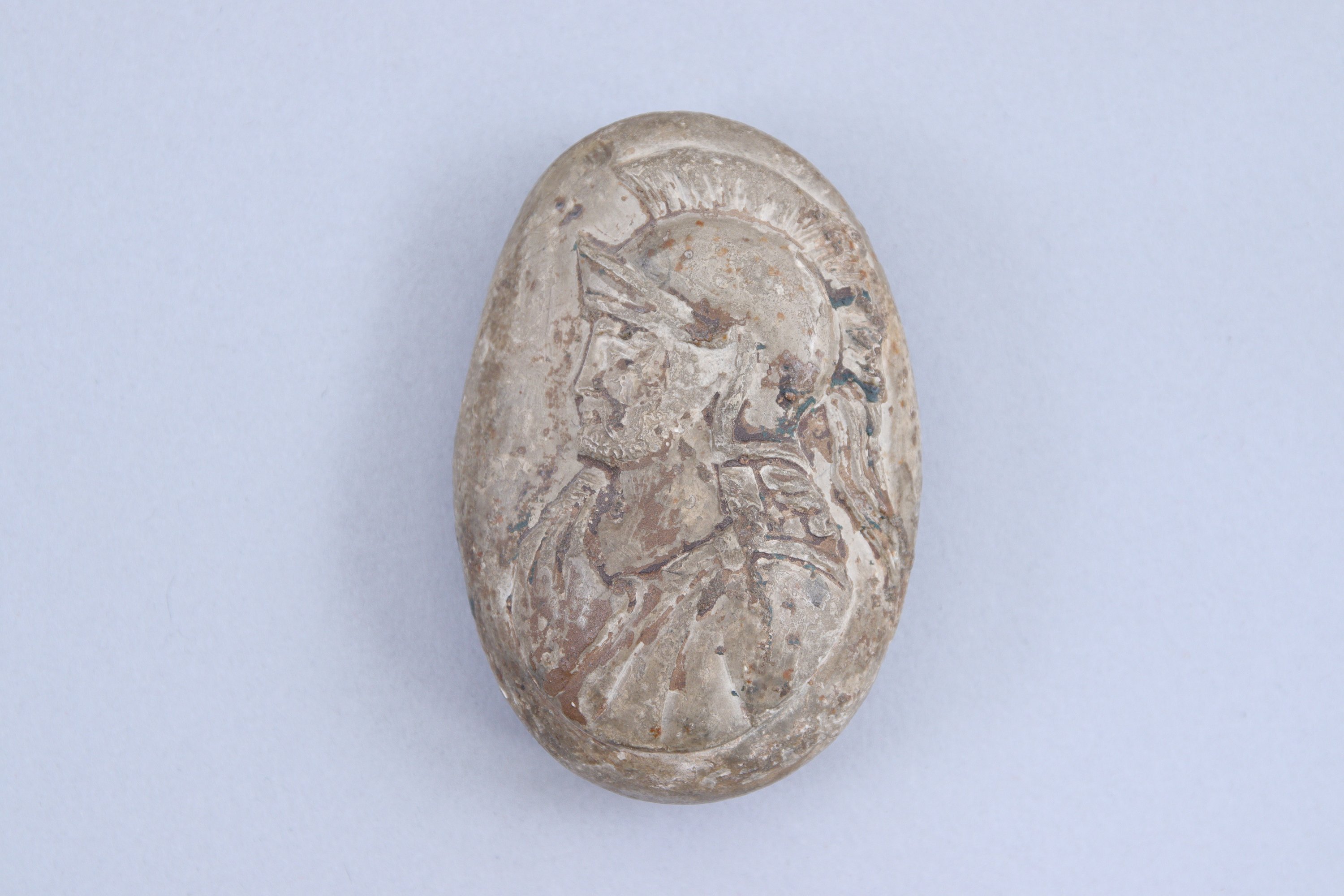 sculpté en relief dun buste du dieu Mars. Trace de peinture.