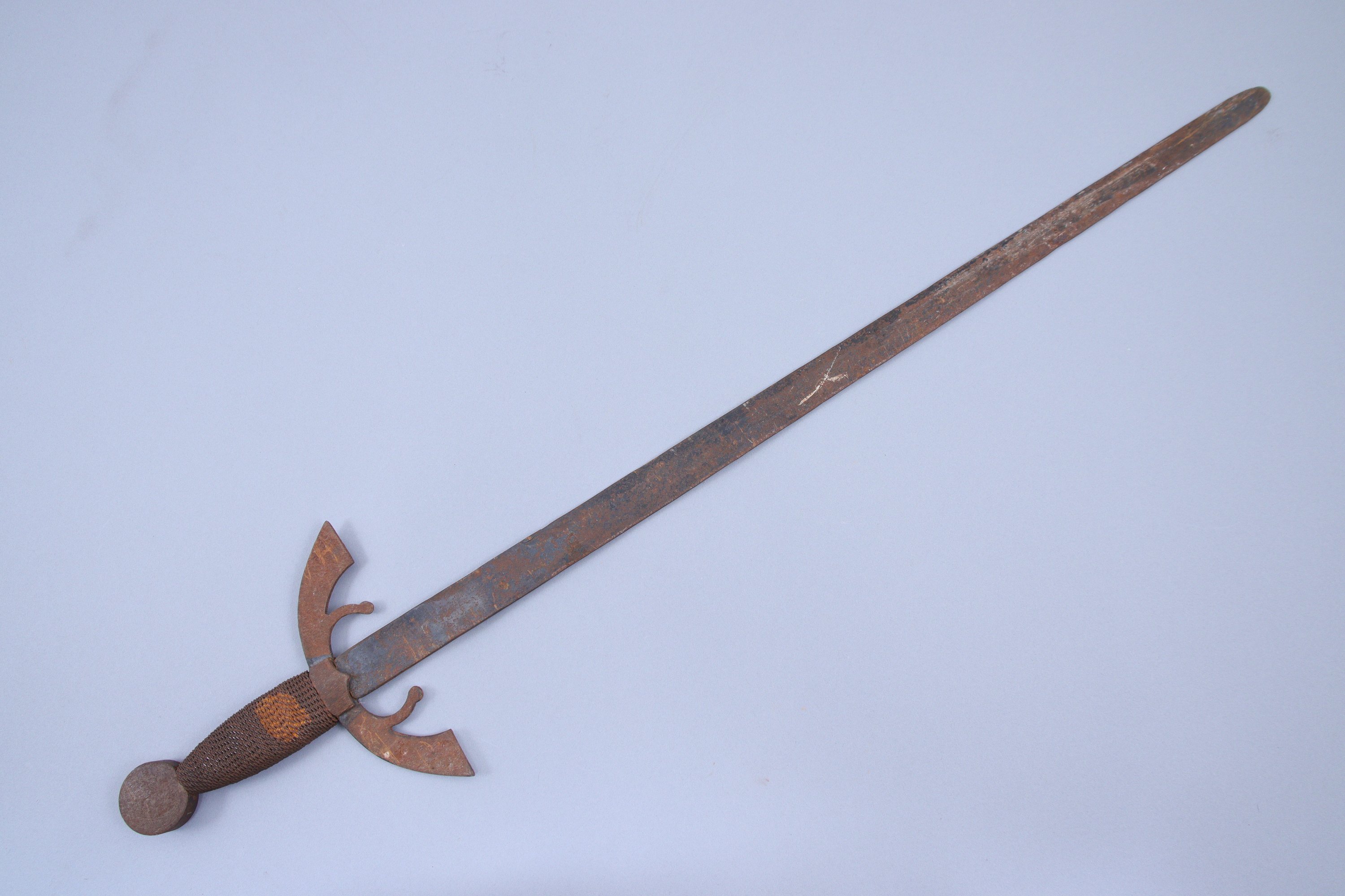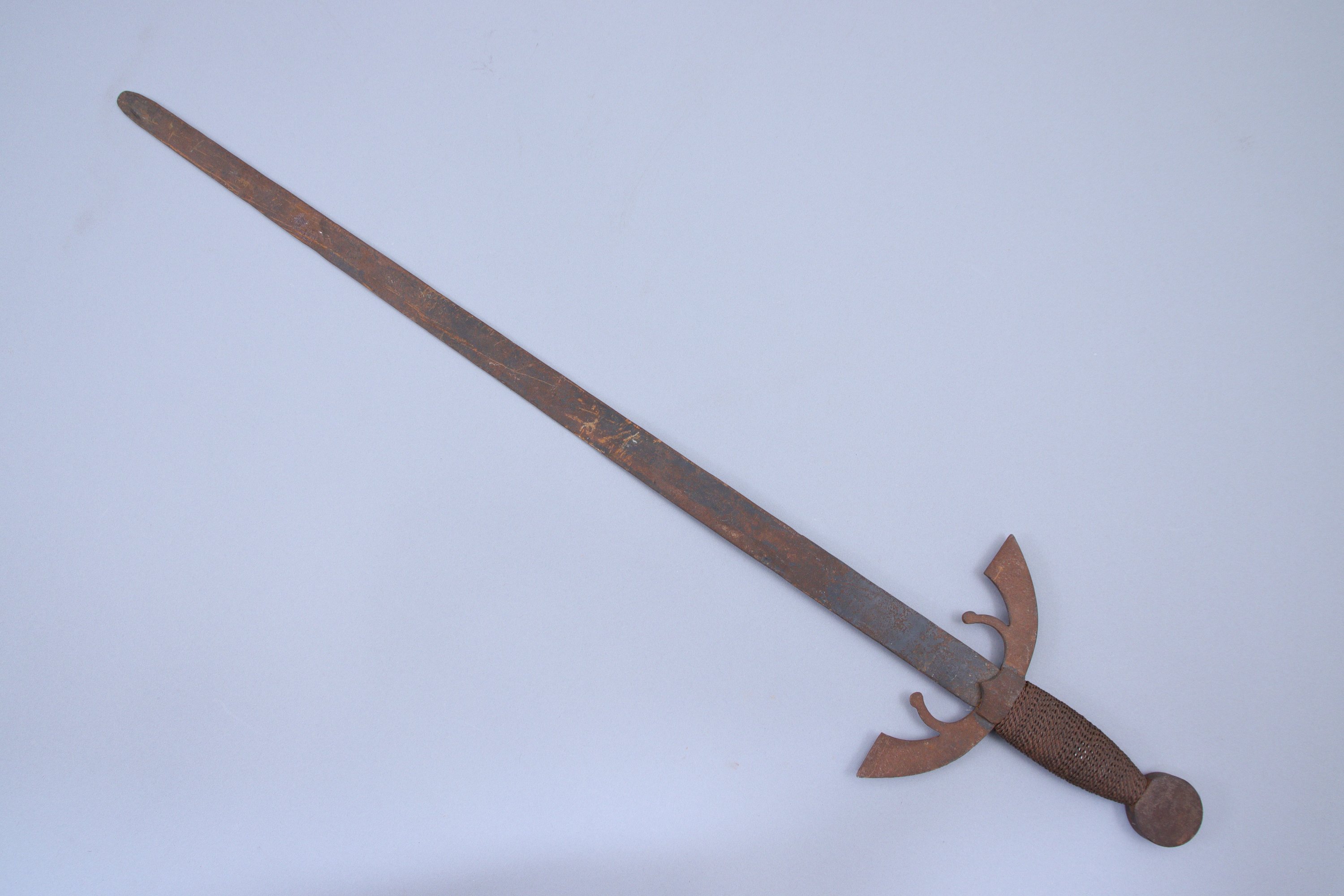 Joint : une épée en fer dans le goût médiéval. Long. 72 cm.