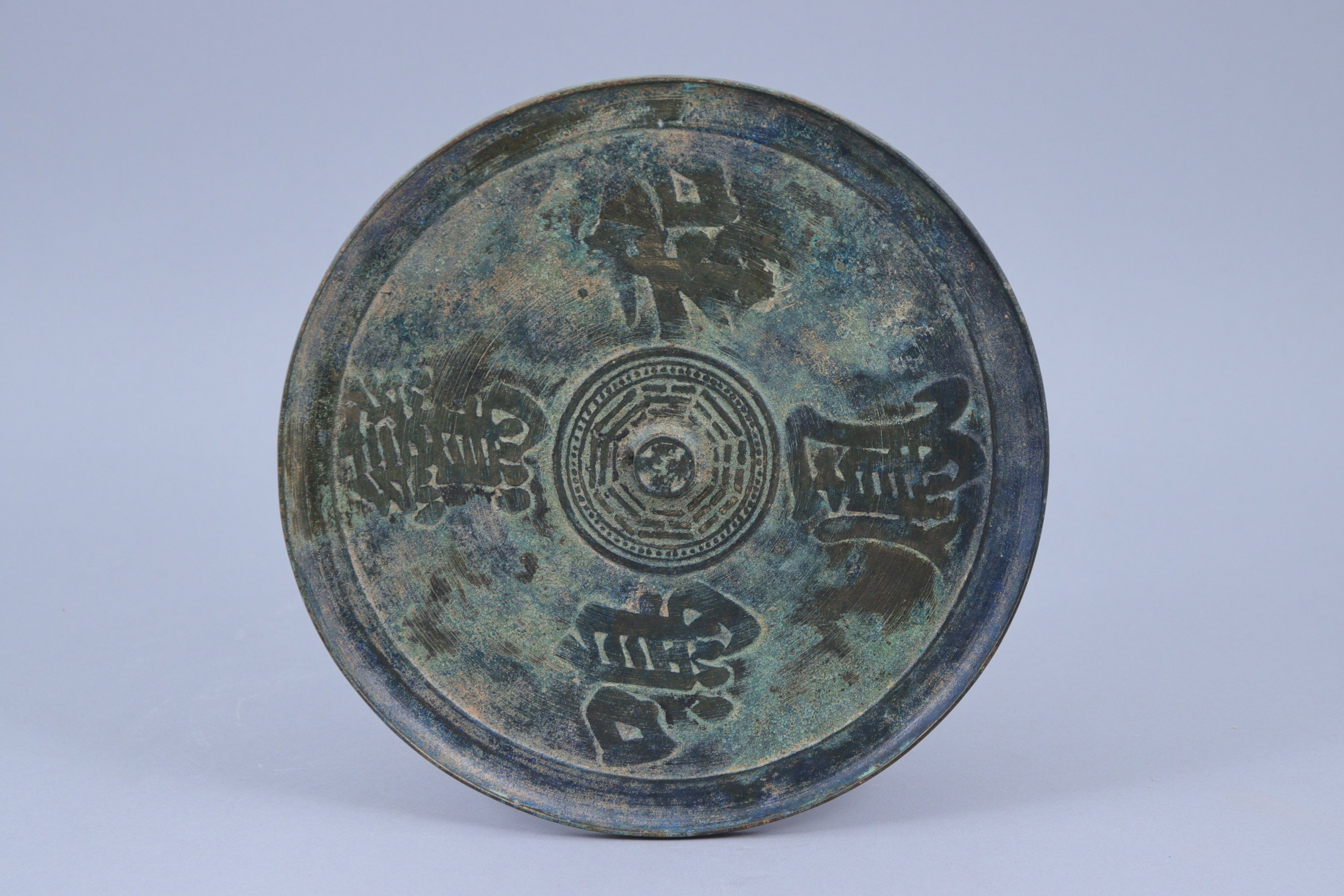 à décor chacun de quatre caractères entourant un motif central de dragon pour l'un et de trigrammes "bagua" pour l'autre.