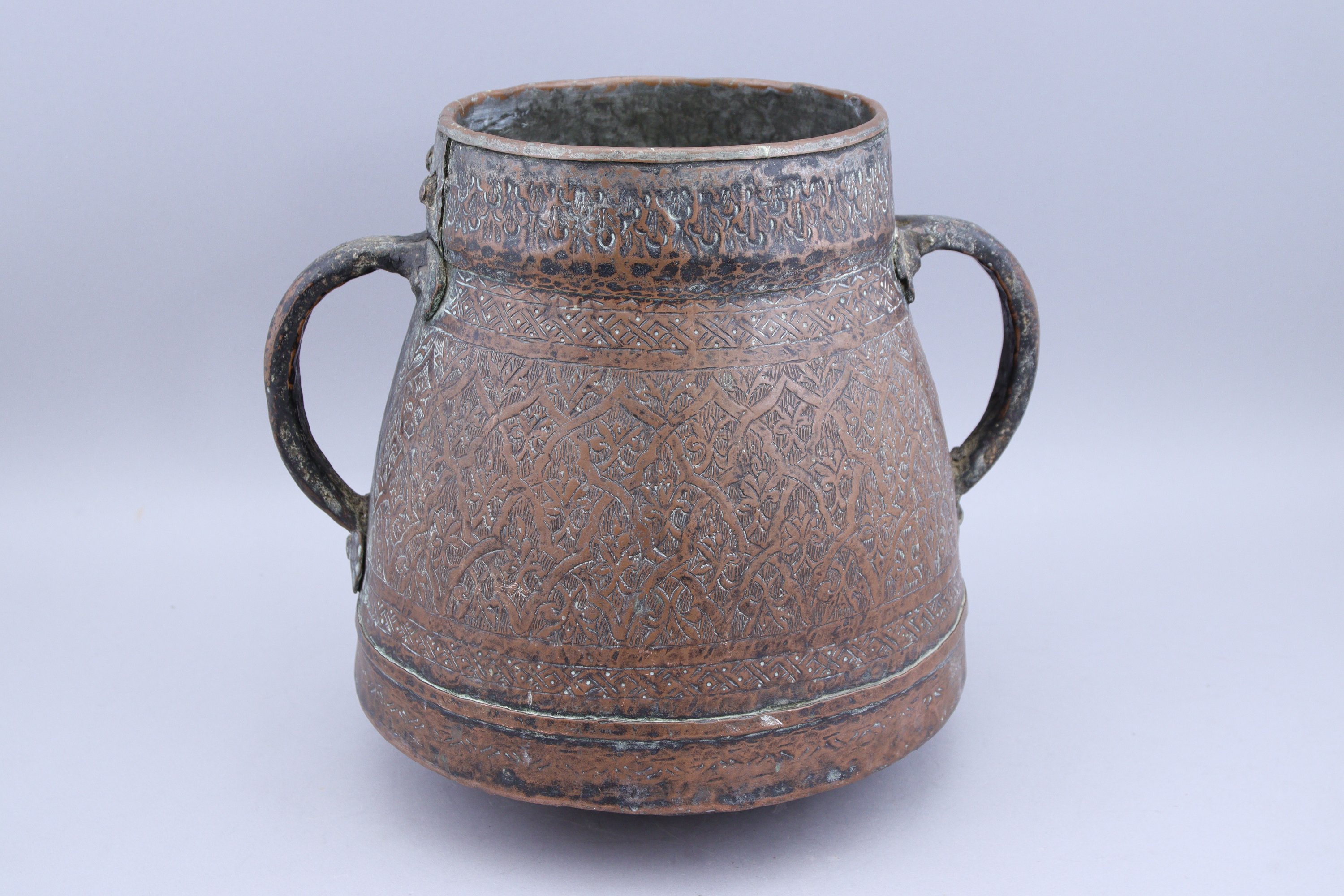 en cuivre gravé à deux anses.