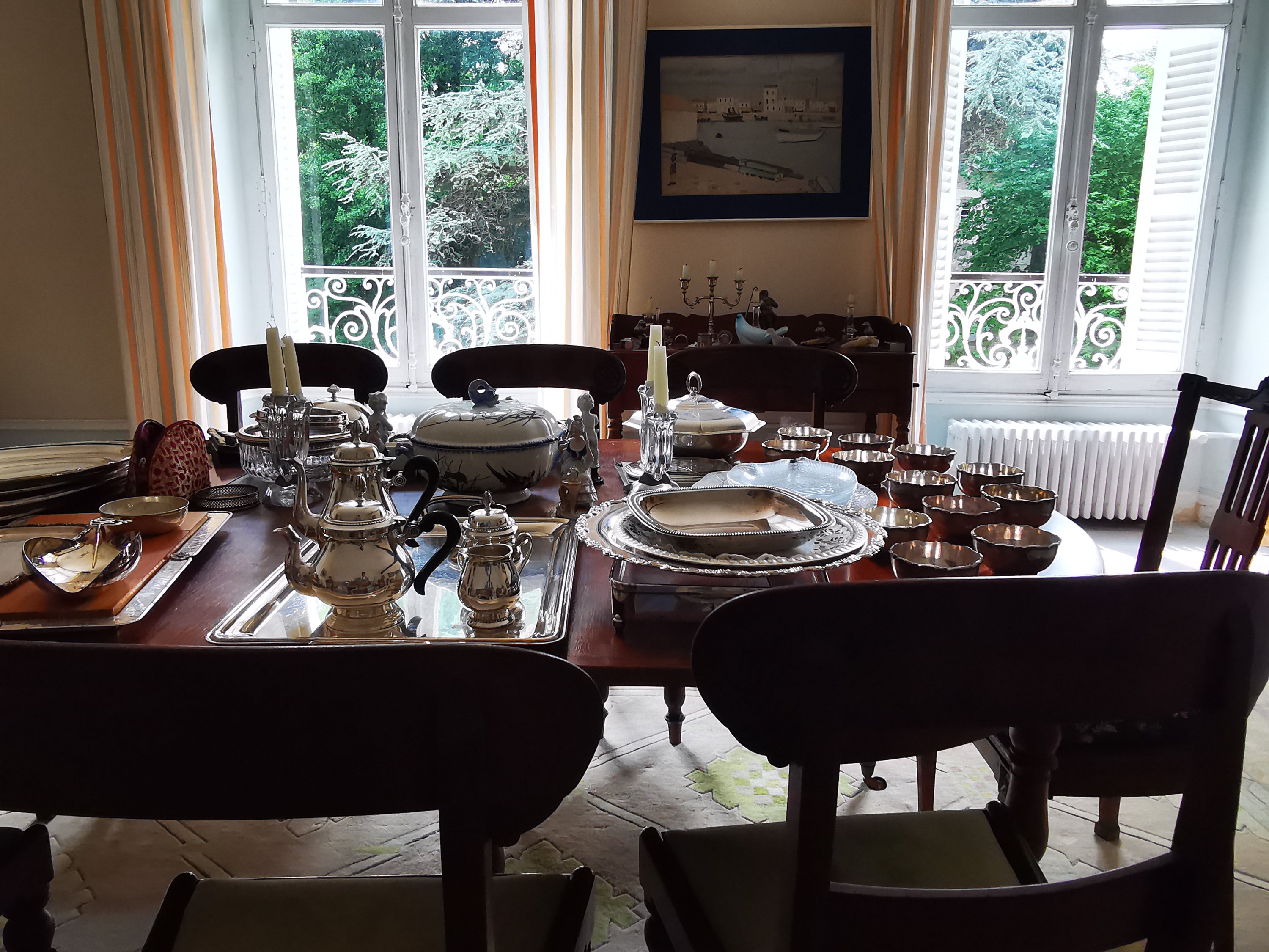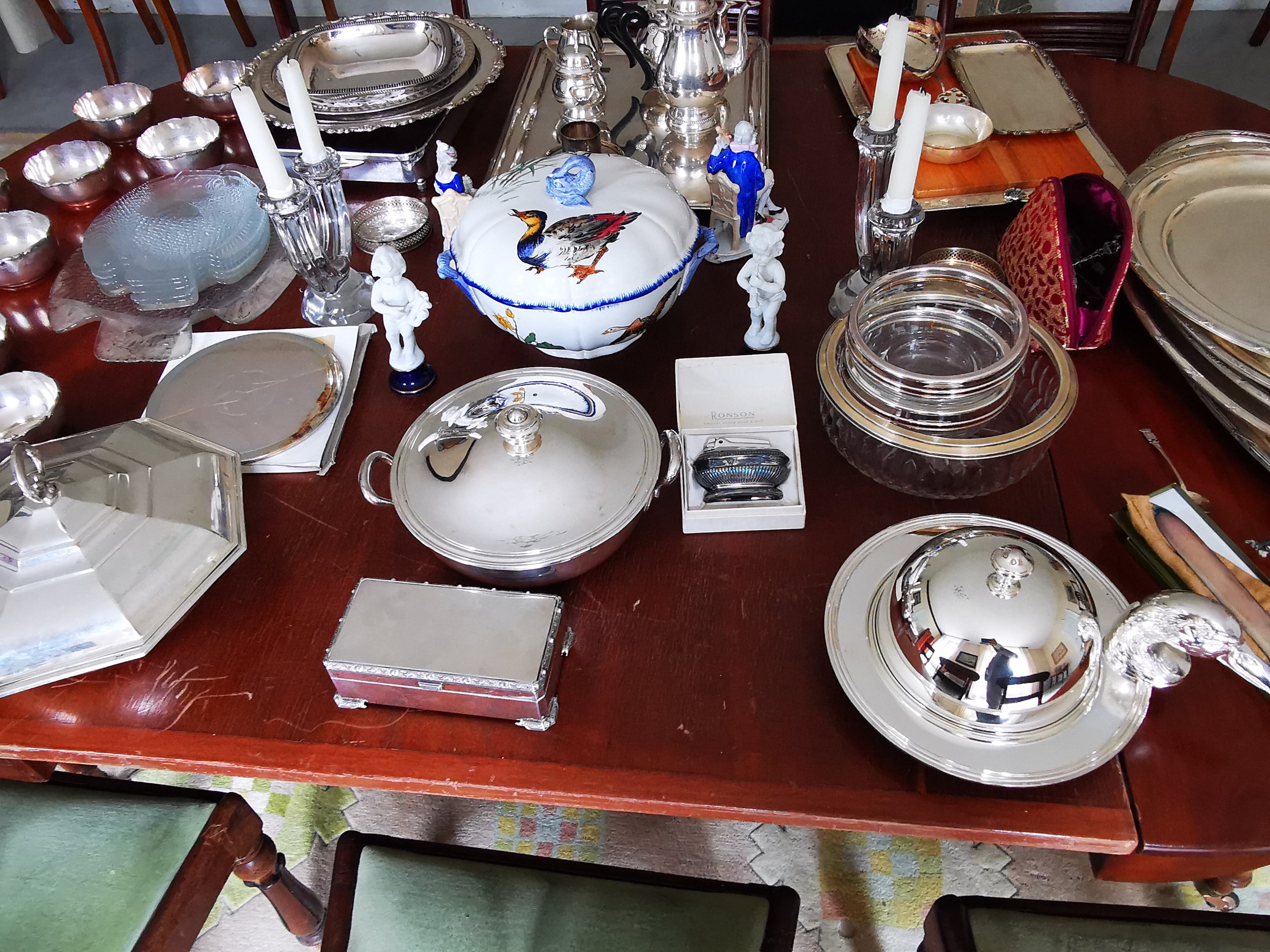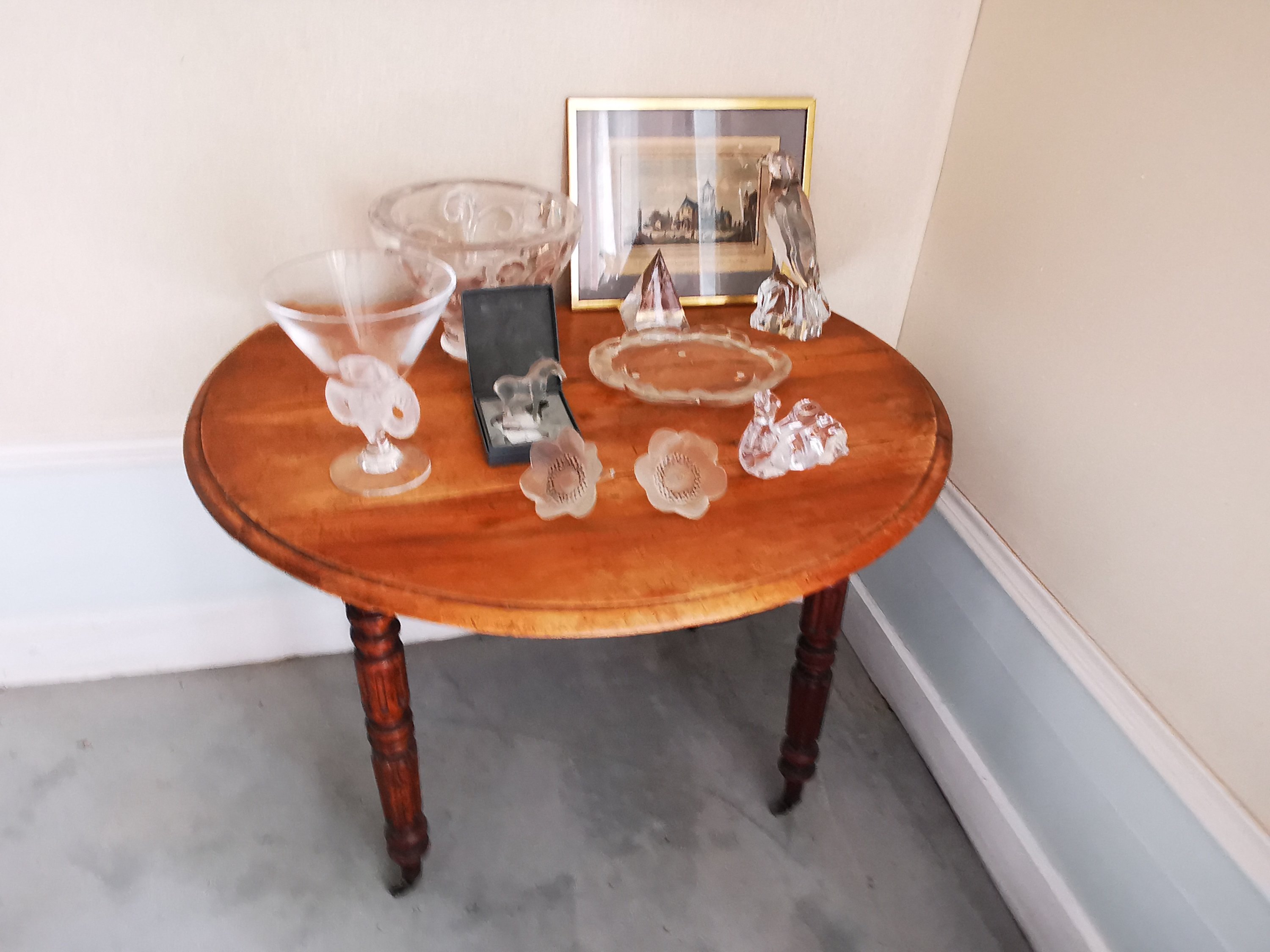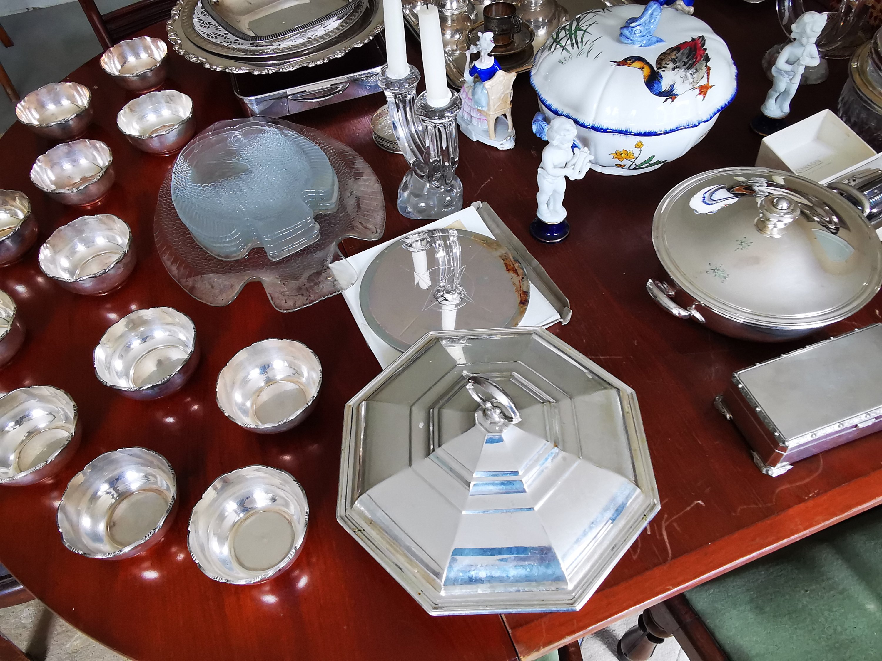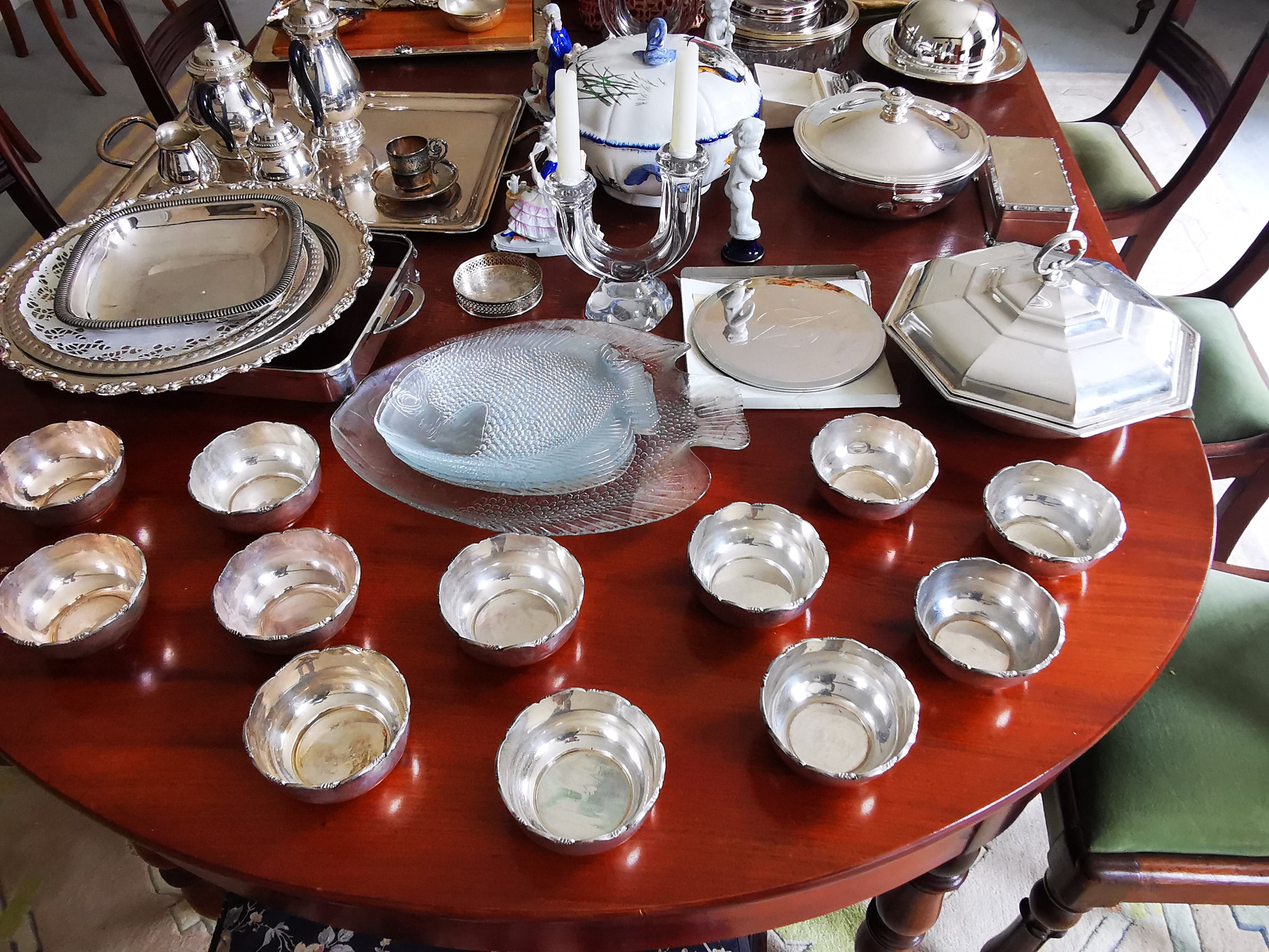 petit mobilier (chaises, console), verreries (dont Lalique), nombreuses pièces de métal argenté, vaisselle, nécessaire de voyage, tableaux...