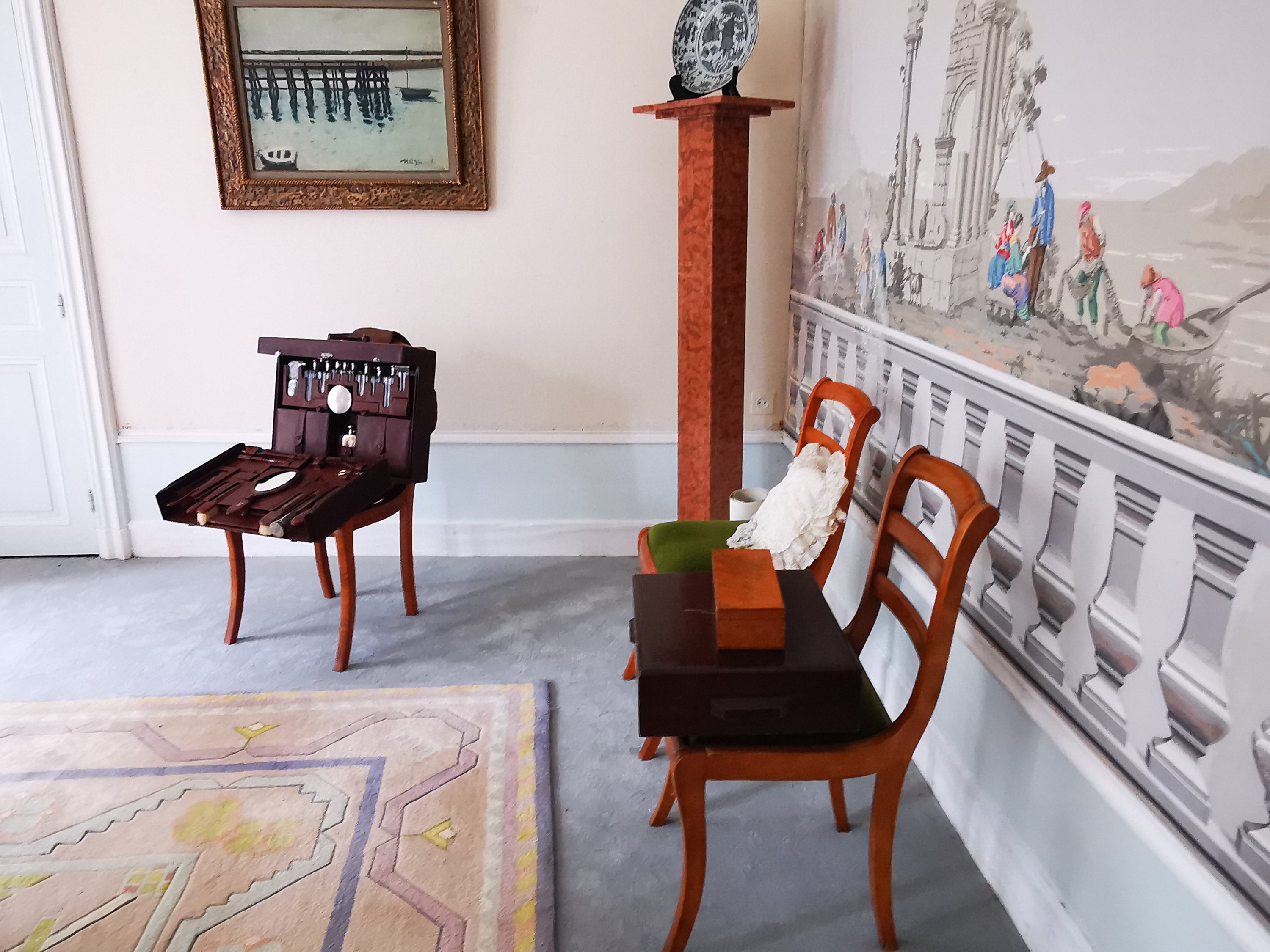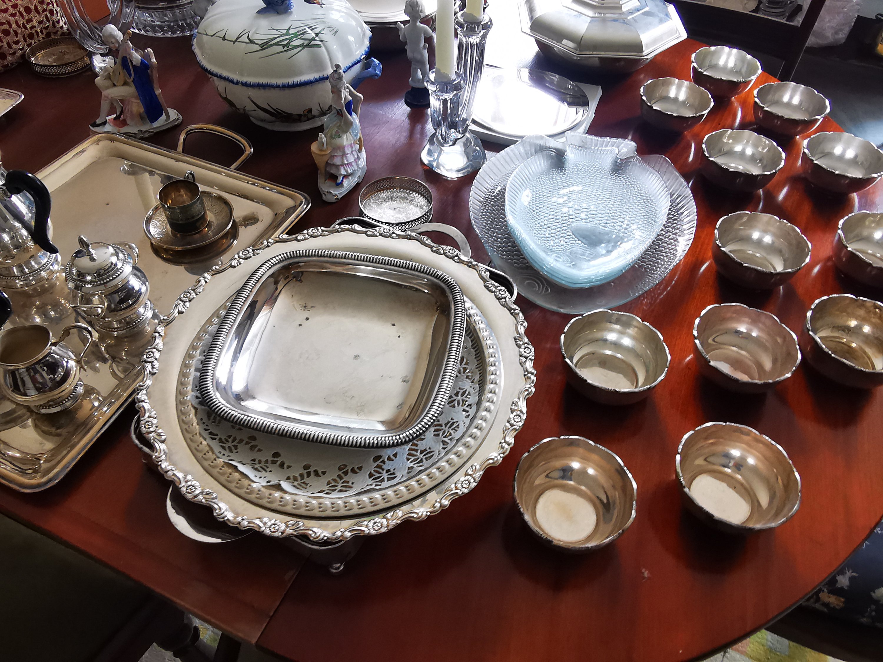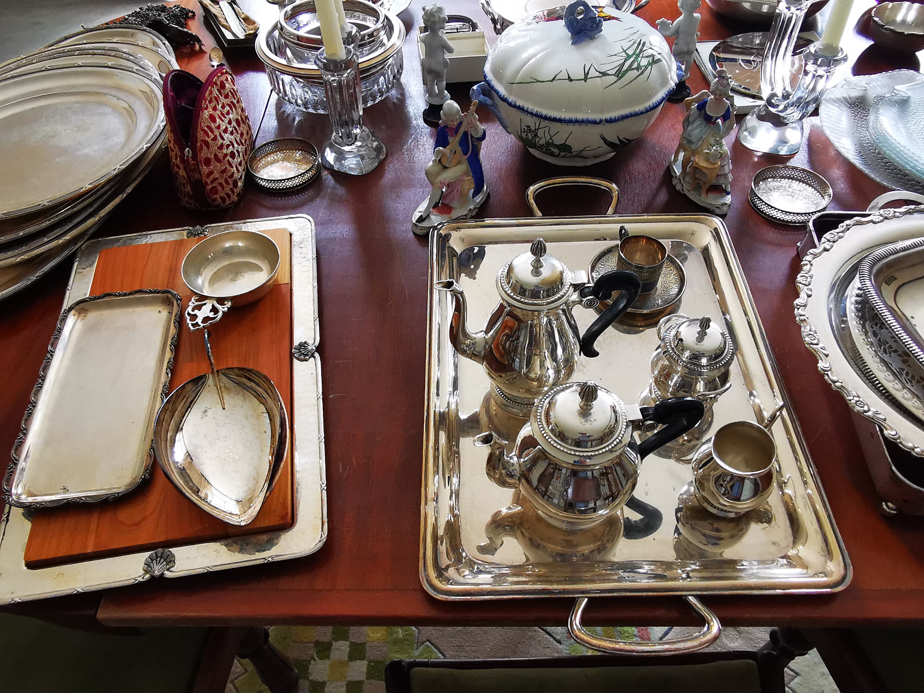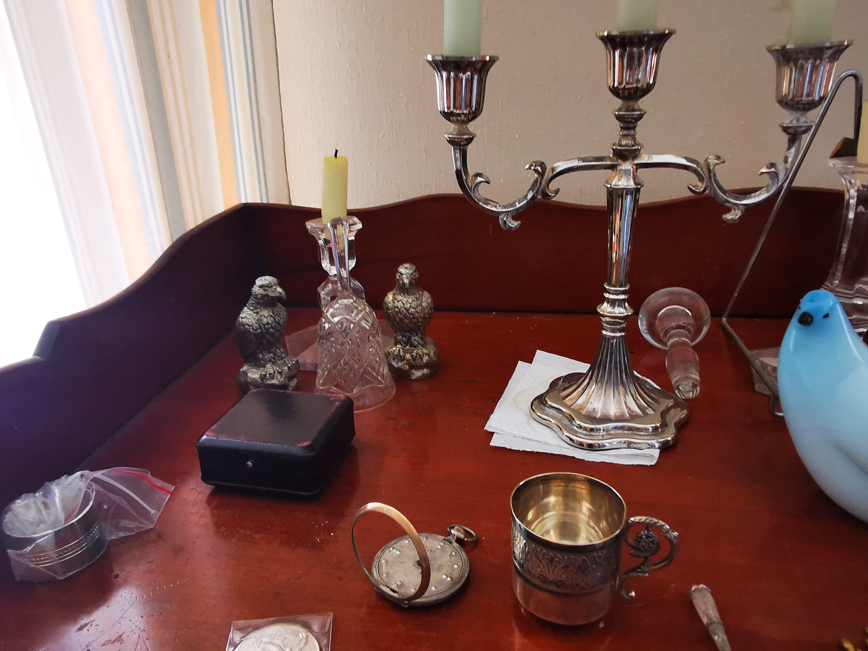 petit mobilier (chaises, console), verreries (dont Lalique), nombreuses pièces de métal argenté, vaisselle, nécessaire de voyage, tableaux...