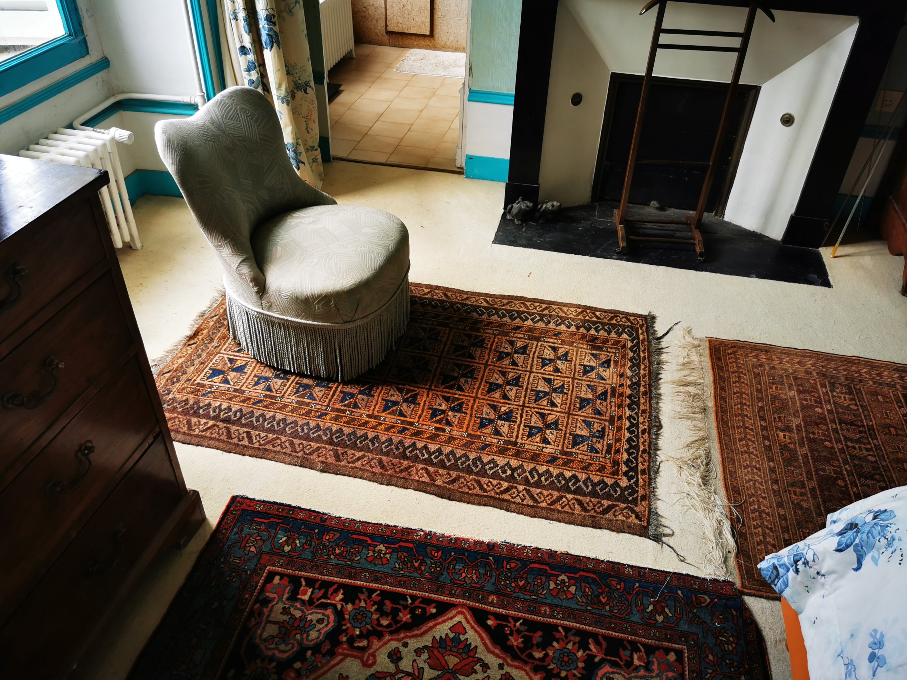 mobilier (armoire, commode, sièges), lampes, bibelots.