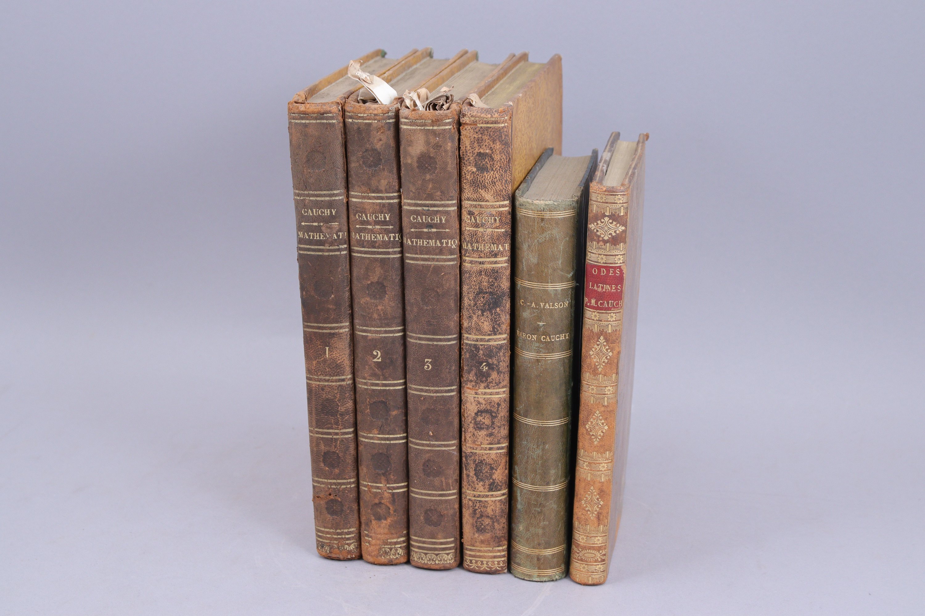 4 volumes in-4°, 1/2 basane du temps. (Dos frottés). Edition originale des 4 premières années des Exercices Mathématiques de Cauchy. Sans la 5ème et dernière année.