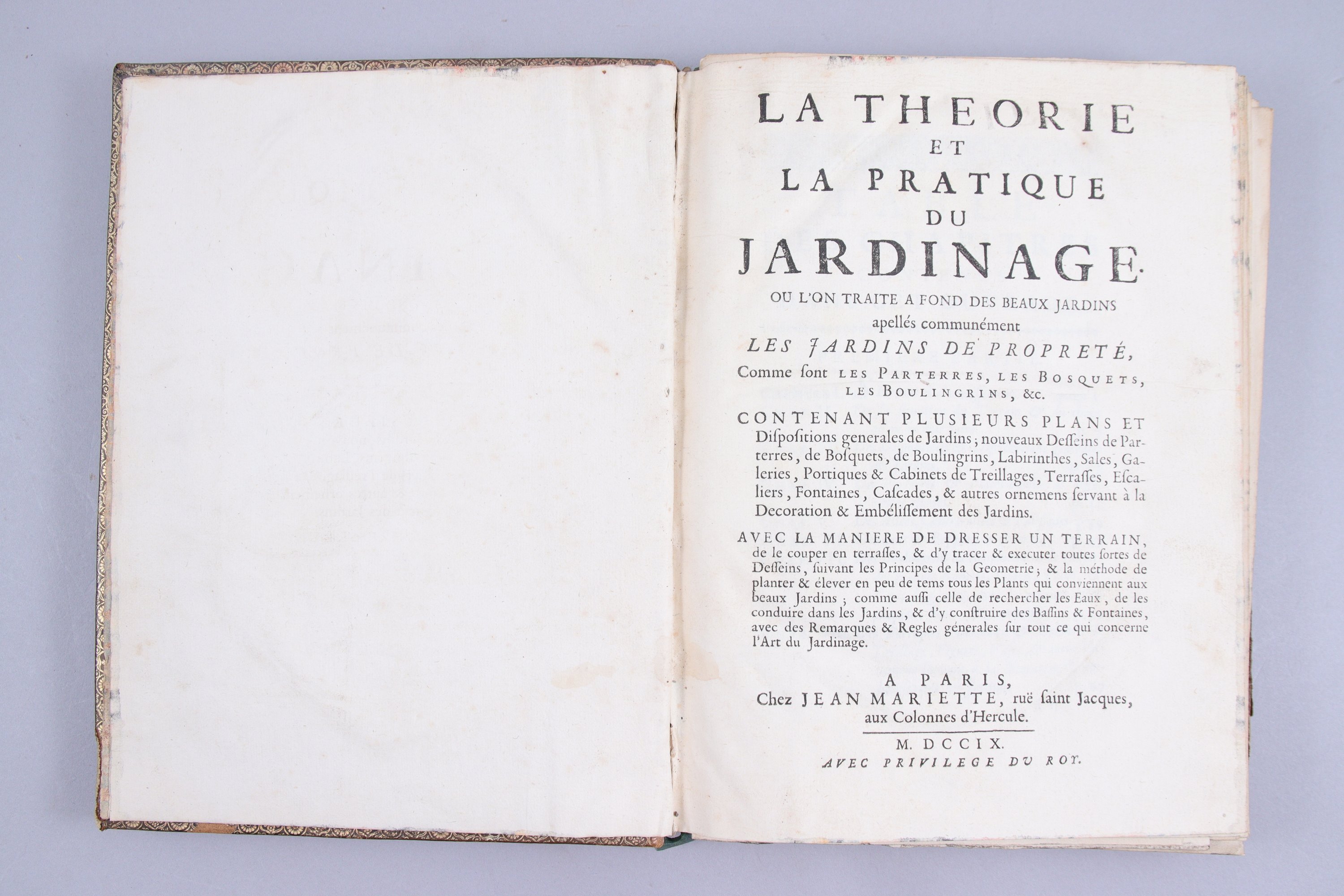 La théorie et la pratique du jardinage. Où l'on traite à fond des beaux jardins appellés communément les jardins de propreté, comme sont les parterres, les bosquets, les boulingrins etc...