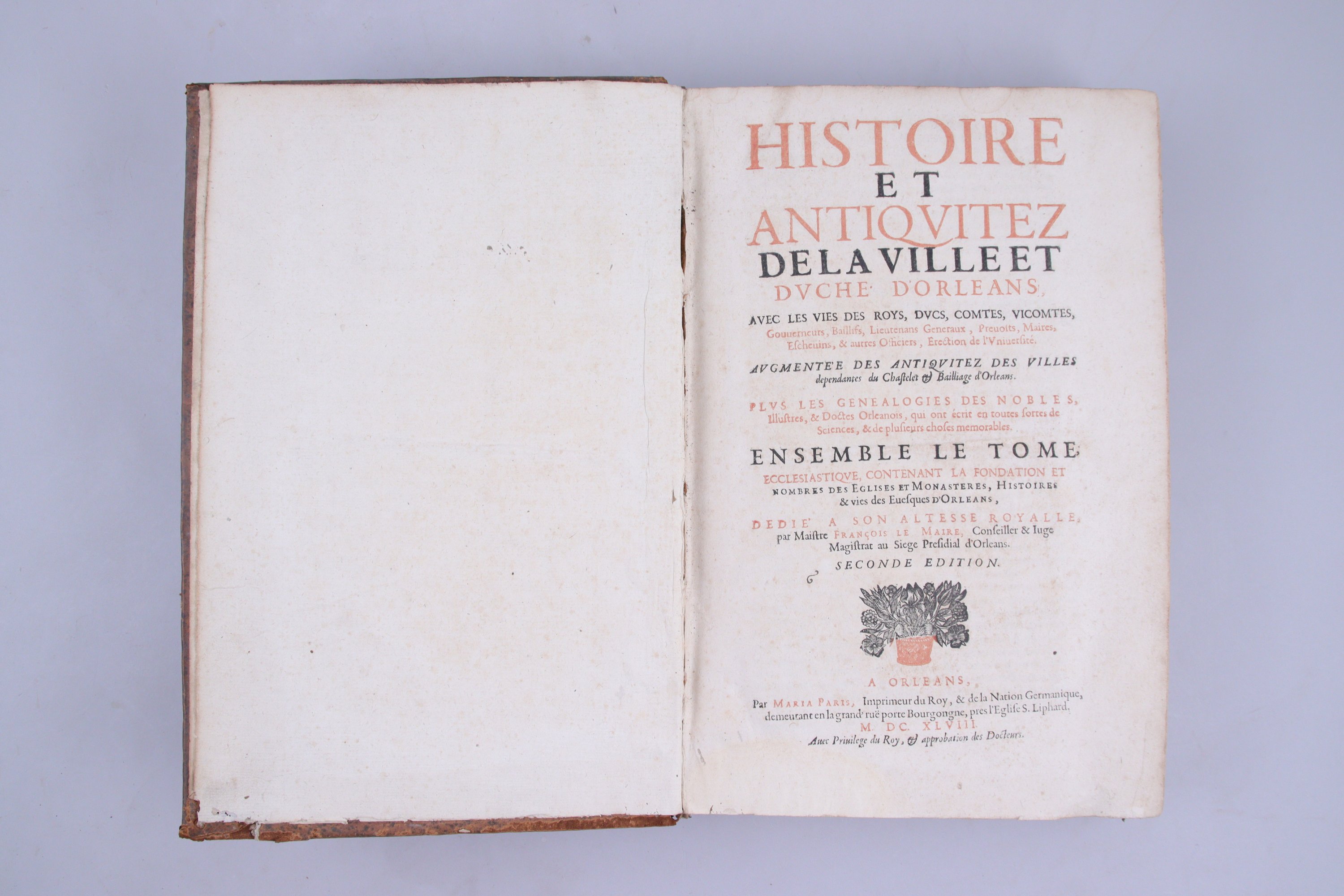 Histoire et antiquitez de la ville et duché d'Orléans avec les vies des Roys, Ducs, Comtes, Vicomtes, Gouverneurs ... et autres officiers, Erection de l'Univesité, augmentée des antiquitez des villes dépendantes du Chastelet et bailliage d'Orléans, plus les généalogies des nobles, illustres et doctes Orléanais.. Ensemble le tome ecclésiastique... Seconde édition.