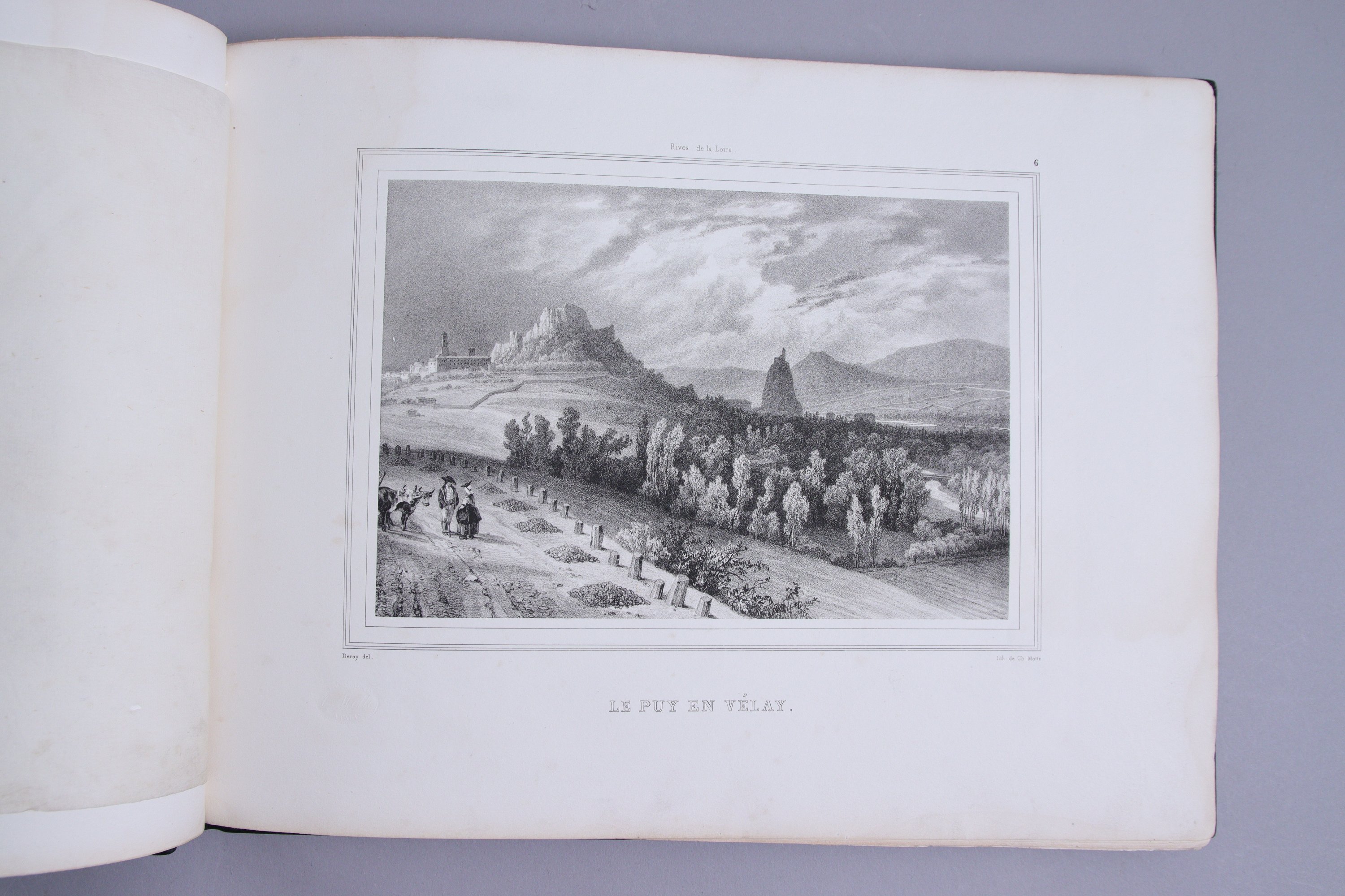 Les rives de la Loire dessinées d'après nature et lithographiées par Deroy en 50 vues avec une carte du cours de ce fleuve.