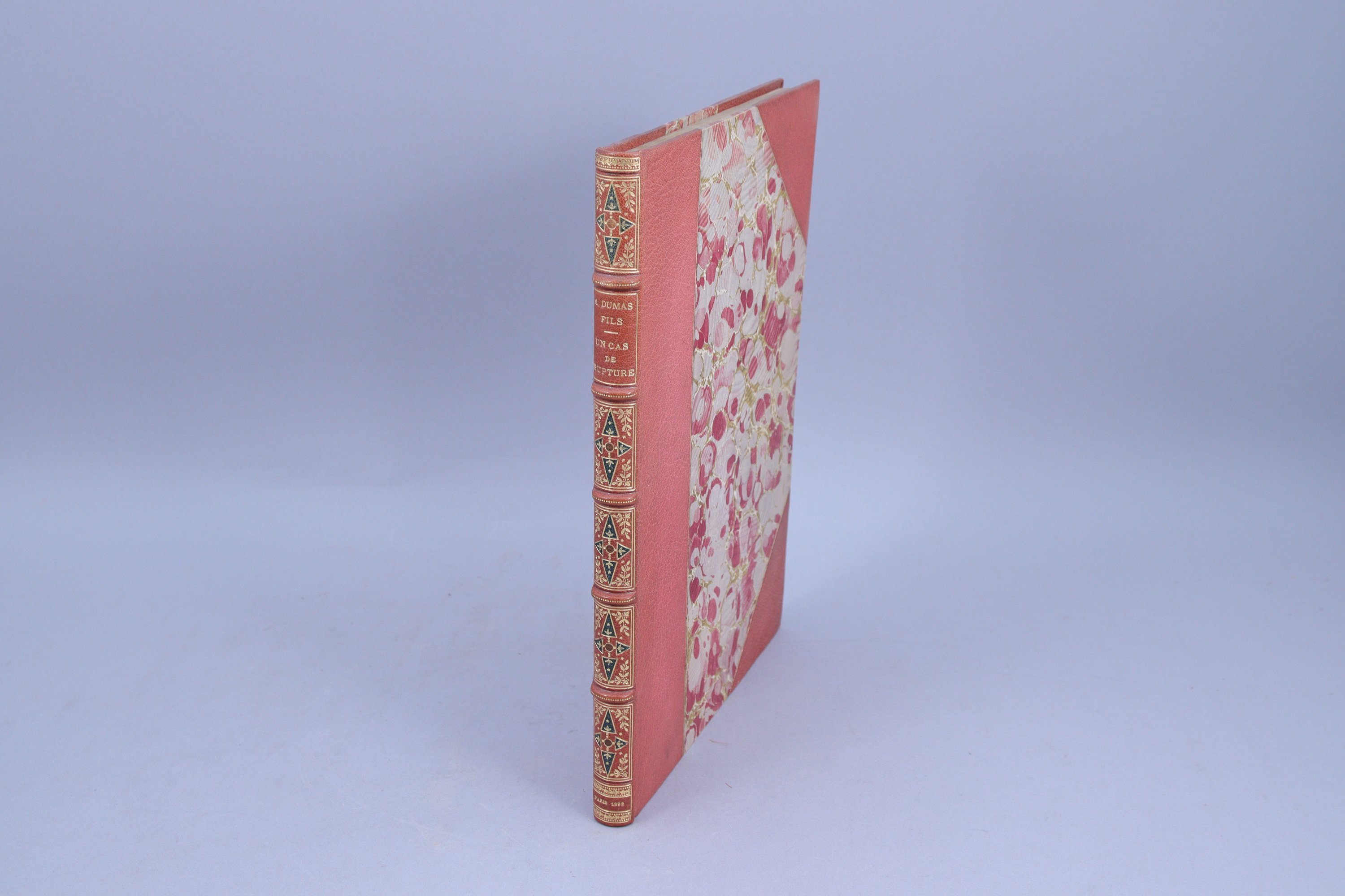 Petit in-folio (325 X 225 mm), (2 ff), 98 pages, (1 f.). 1/2 maroquin à coins orange à gros grains ; dos mosaïqué orné de petits fers dans les entrenerfs, et d'un filet aux pointillés sur les nerfs. Tête dorée. Couvertures conservées. Reliure du temps, parfaitement établie, signée Coeurdevey.