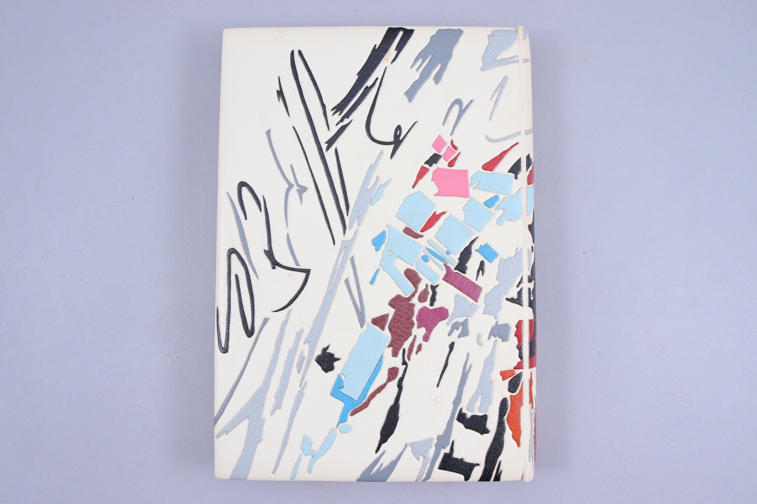 Grand in-8 (280 X 195 mm), plein maroquin mosaïqué doublé de veau blanc mosaïqué. Tête dorée. Chemise souple de vachette ; étui de feutrine gris souris. (Petites taches sur la doublure). Reliure signée Gomez. (Ramon Gomez Herrara).
