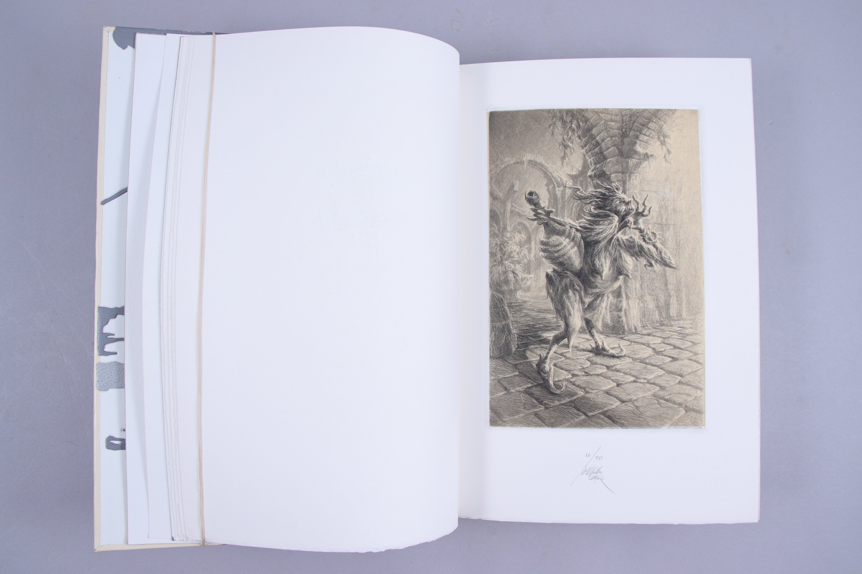 Tirage à 200 exemplaires seulement, tous sur vélin de Rives ; celui-ci un des XXX exemplaires en chiffres romains destinés aux collaborateurs (n°IX). Pointes sèches de Jean-Michel Mathieux-Marie in et hors-texte, le frontispice signé au crayon et justifié IX sur XVI.