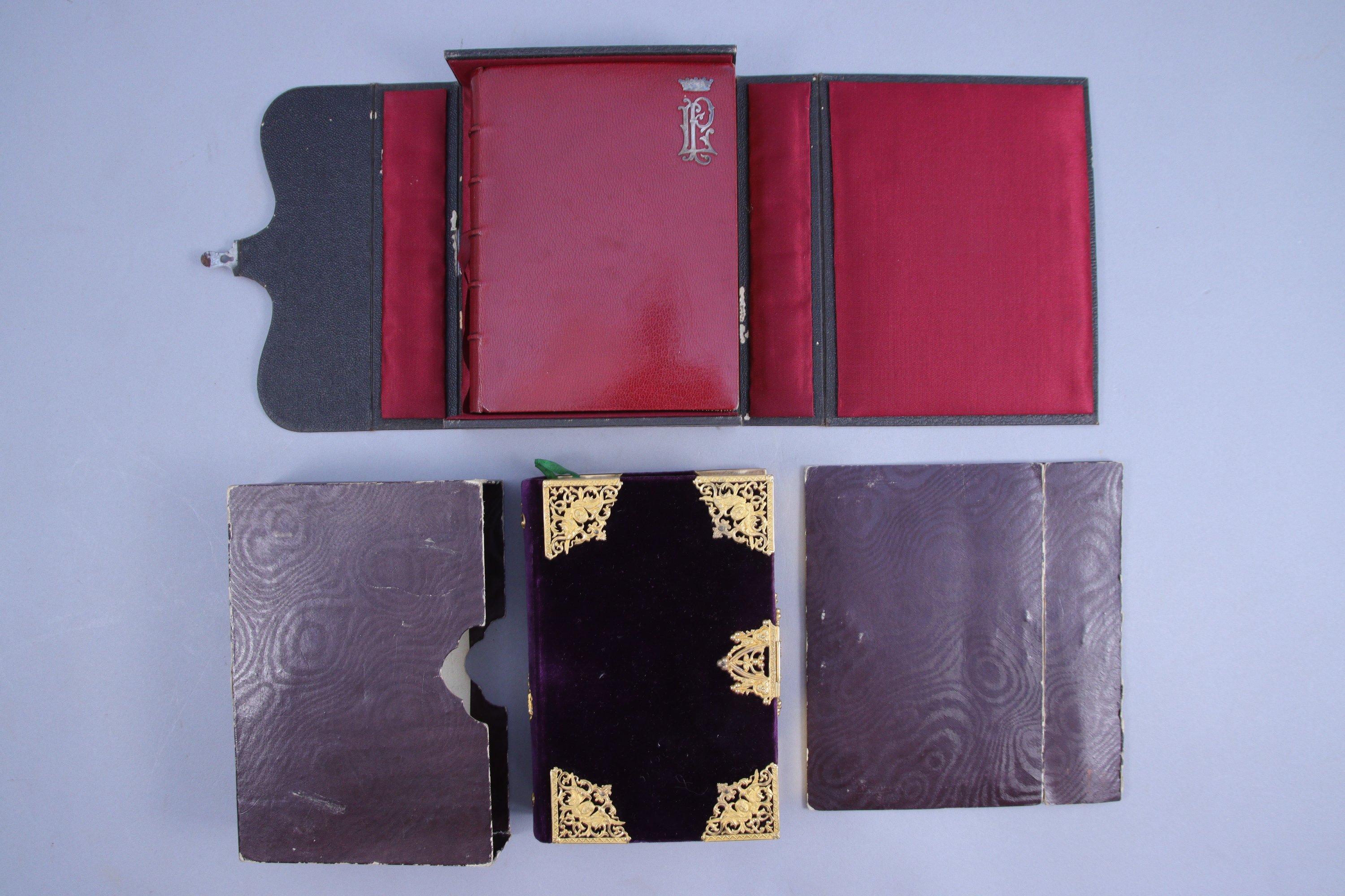 In-12 carré. 176 pages et (5 feuillets). Plein maroquin janséniste cerise. Chiffre couronné LP en argent sur le premier plat ; large dentelle intérieure, gardes de moire. Toutes tranches dorées. Reliure signée en queue Gruel. Etui de percaline noire avec rabat et fermoir, avec garniture de soie rouge. Etiquette sur l'étui : Librairie Georget-Joubert, Semeur-Laplaine Successeurs, Tours.