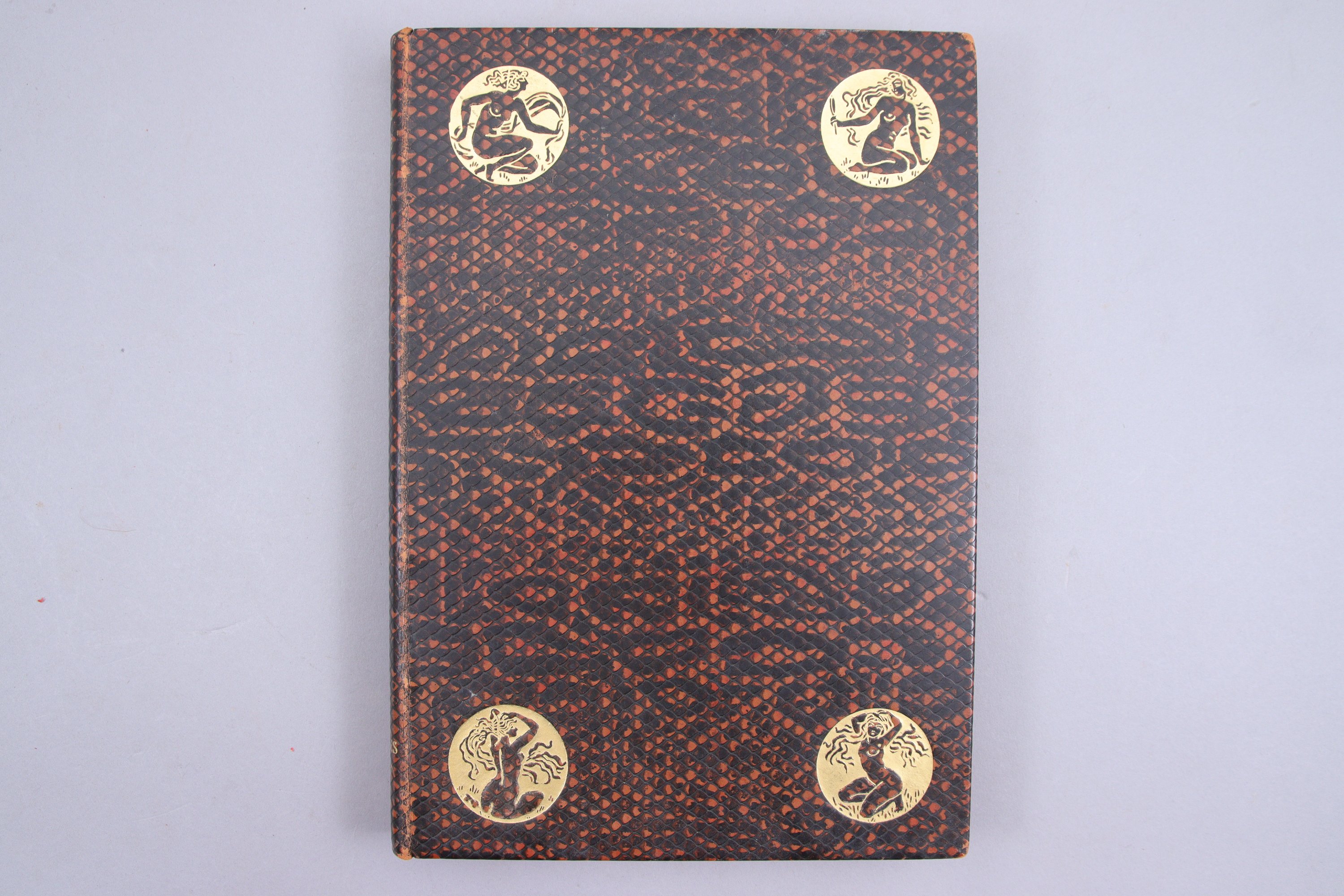 Grand in-8. Reliure imitant une peau de serpent, illustrée dans les angles de médaillons frappés de fers représentant des Belles de Nuit. (Reliure portant l'étiquette de René Kieffer).