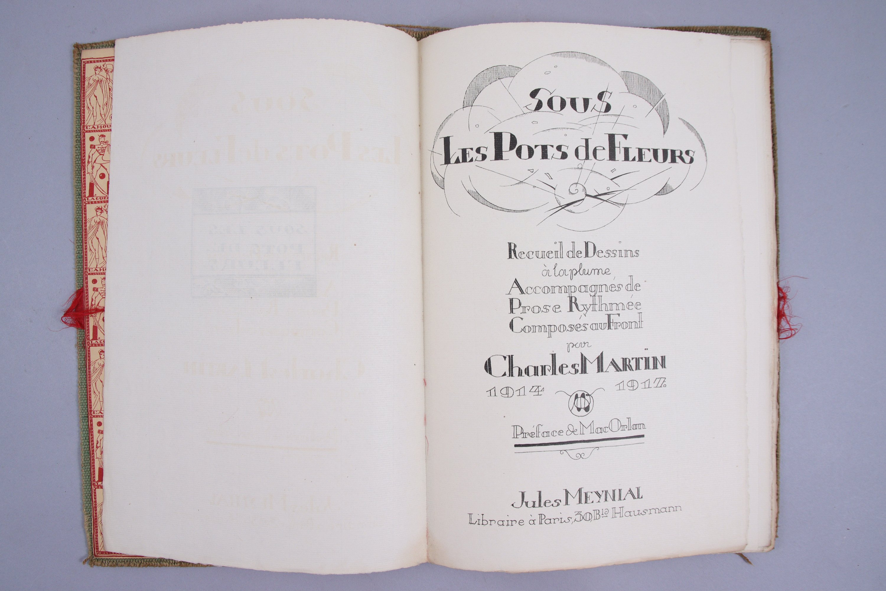 Sous le pot de fleurs. Recueil de dessins à la plume, accompagnés de prose rythmée, composés au front par Charles Martin. 1914-1917. Préface de Mac Orlan.