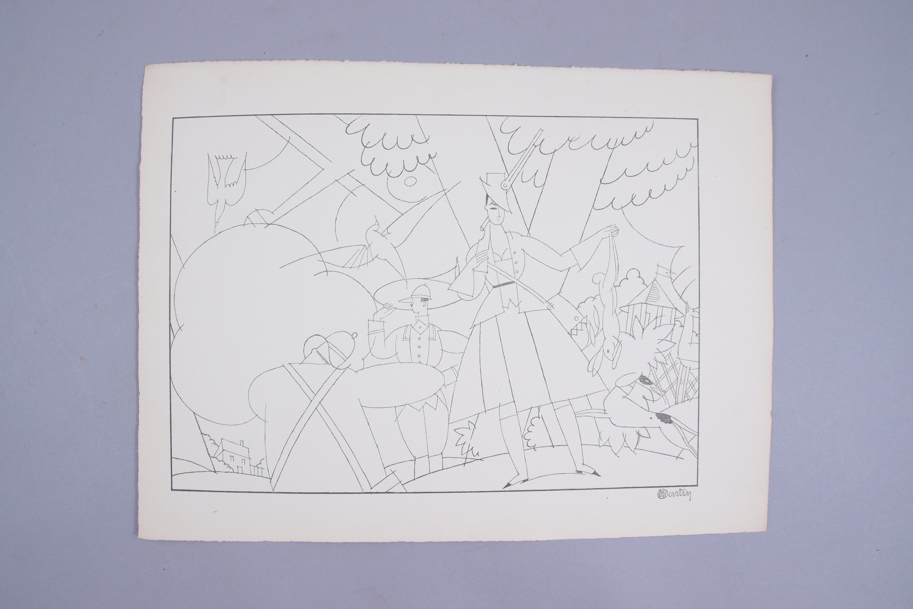 Petit in-4°, en feuilles, (2 ff), 26 dessins au trait, en noir, à pleine page avec verso blanc.Tirage à 300 exemplaires. Couvertures de parution en toile de jute verte.