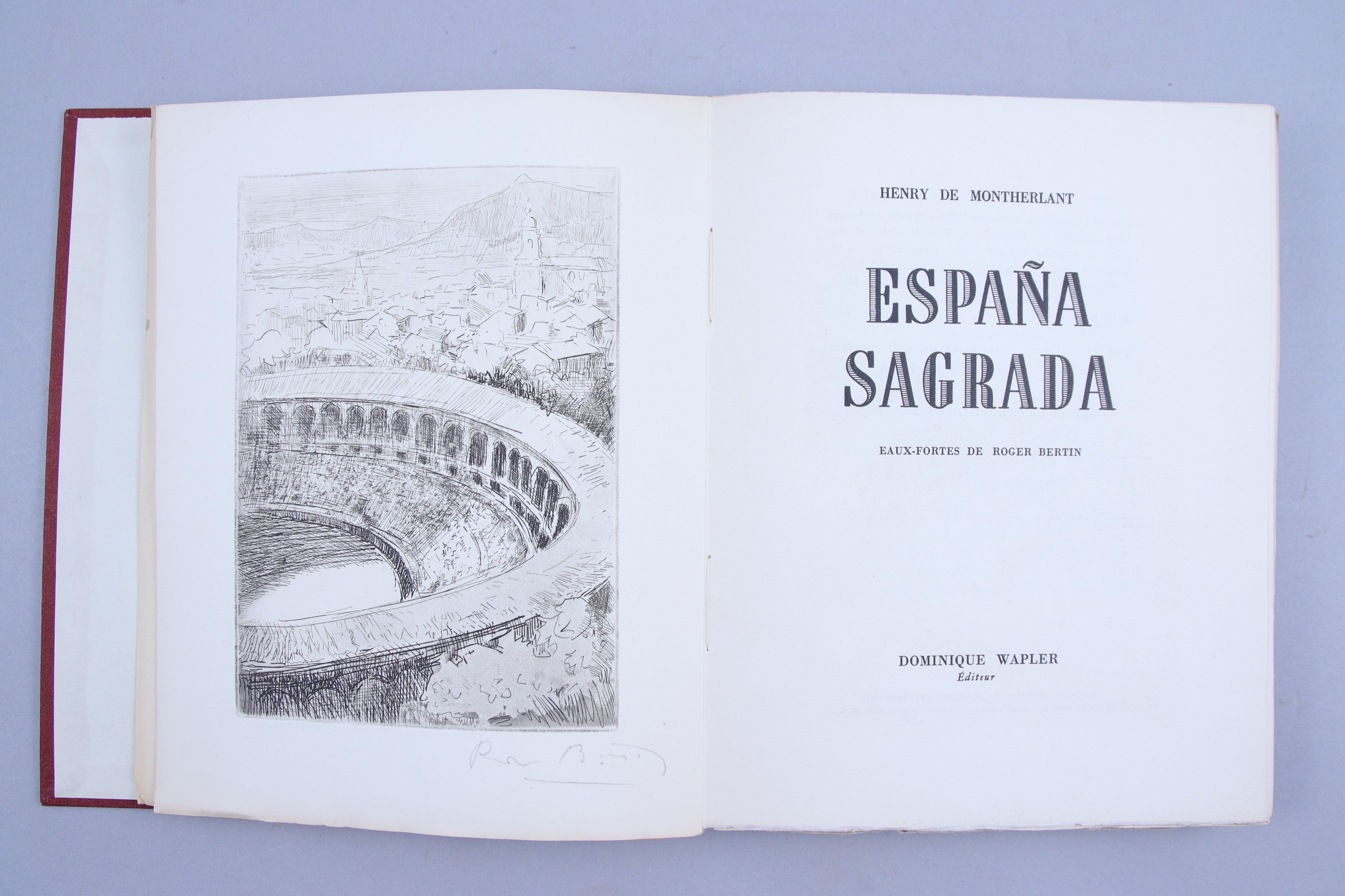 Ont-été ajoutées : une aquarelle originale signée, et 8 eaux-fortes sur les corridas, dont une sur Chine, toutes signées Roger Bertin "épreuves d'artiste".