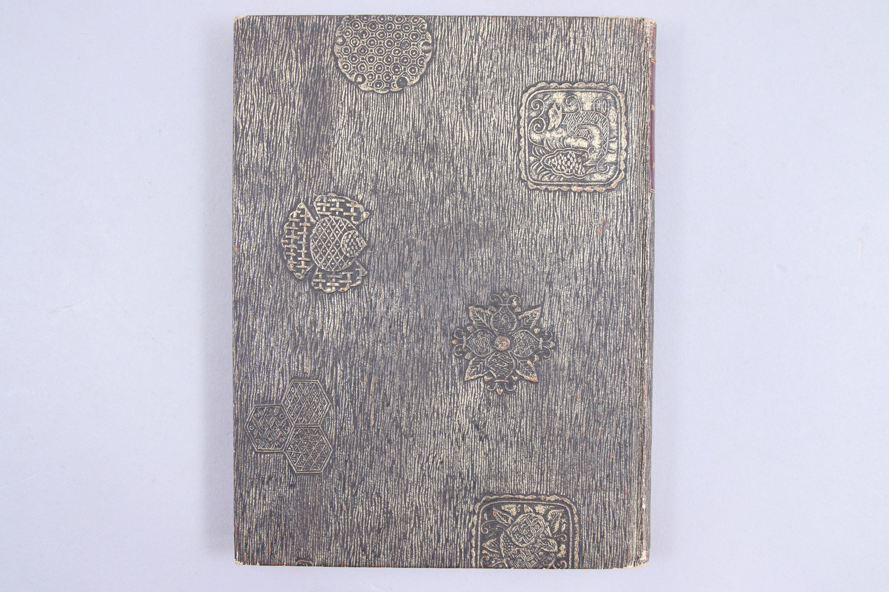 Les reliures japonisantes furent mises à la mode par Edmond de Goncourt en 1885, après une importante exposition d'art japonais. Elles sont très rarement signées. Celle-ci a conservé toute sa fraîcheur.