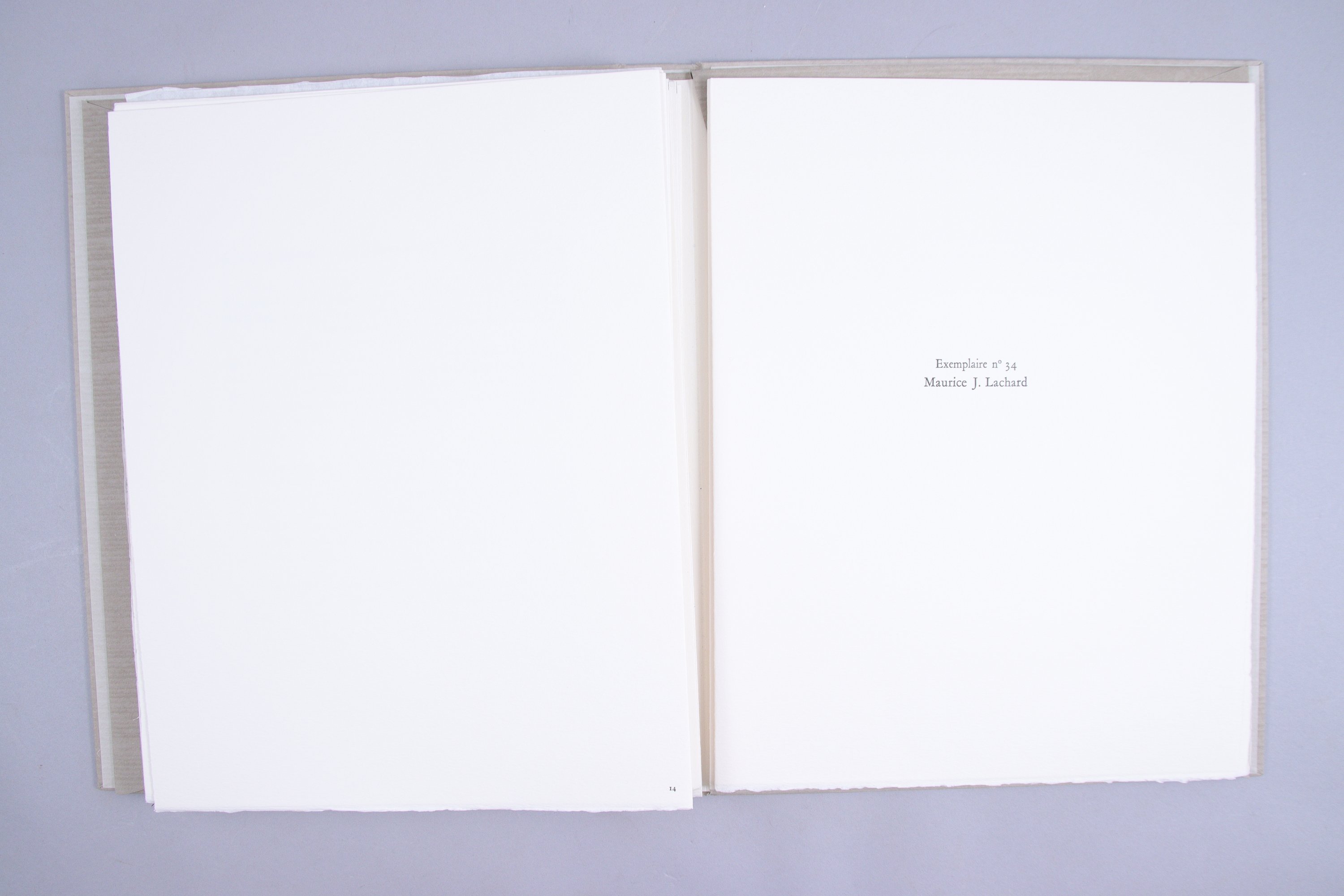 Tirage à 130 exemplaires, tous sur vélin d'Arches, celui-ci n° 34 au nom de Maurice J. Lachard.