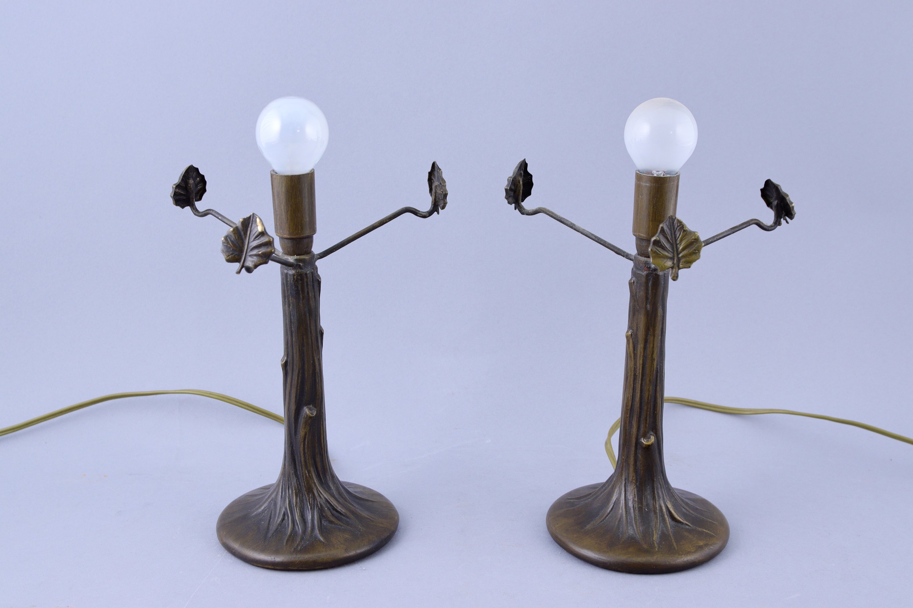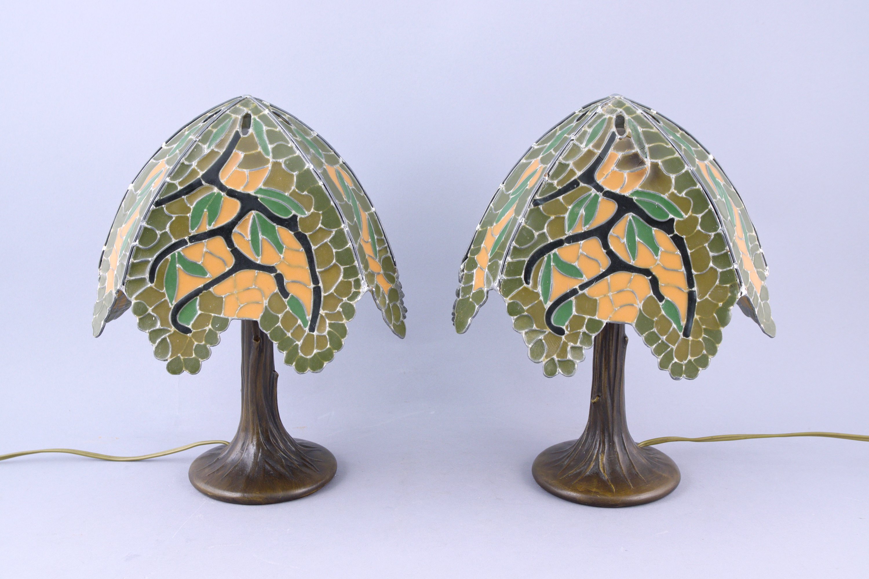 Dans le goût de Tiffany Paire de lampes de tableles pieds en bronze patiné formant...