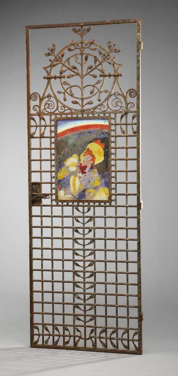 Provenance : d'après la tradition provient - avant sa destruction - d'une maison décorée par Jules CHERET (1836-1932) à Nice ; la ferronnerie serait d'Edgar BRANDT (1880-1960).