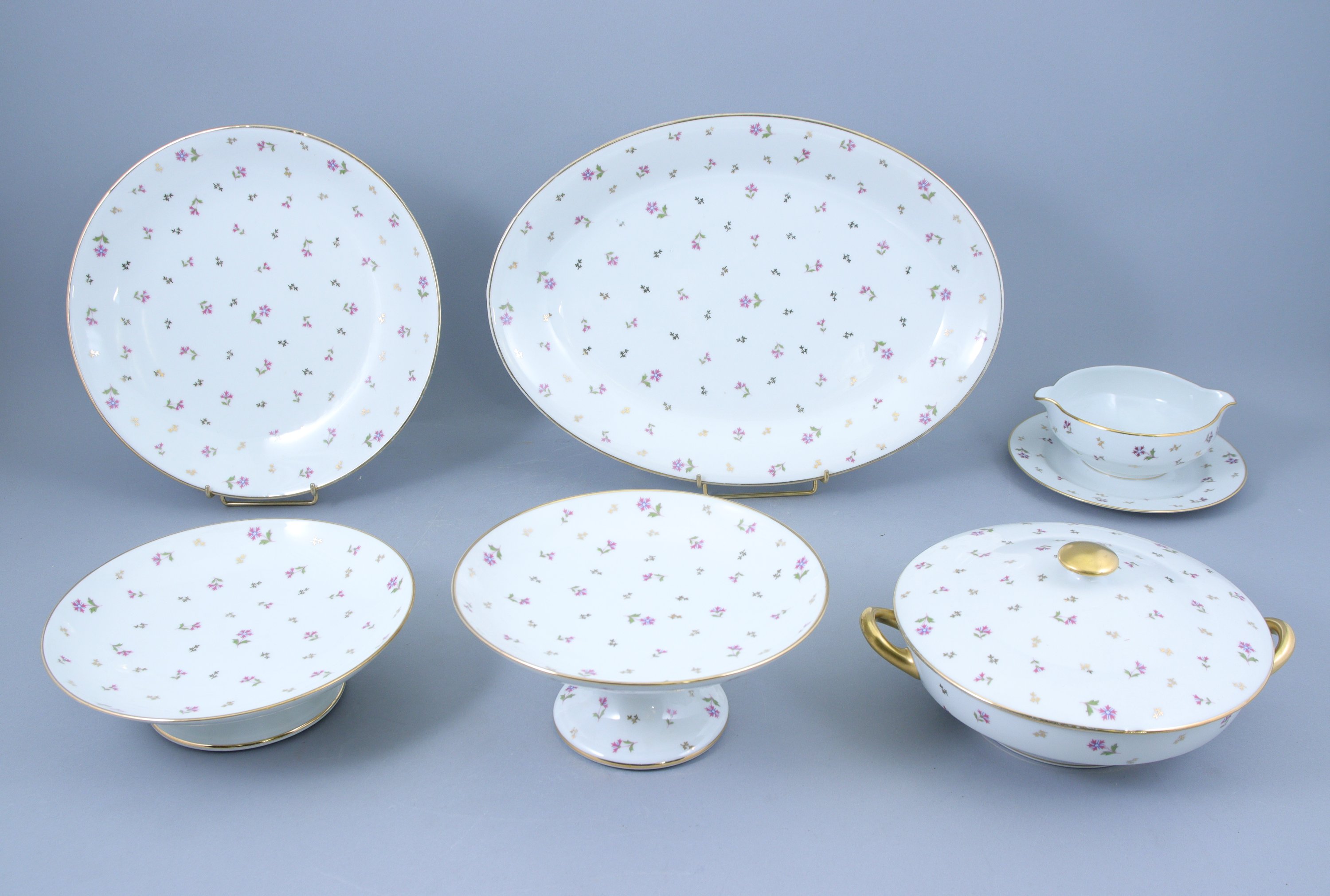 Charles Ahrenfeldt à LimogesService de table aux barbeaux de 75 piècesen porcelaine à fond blanc...