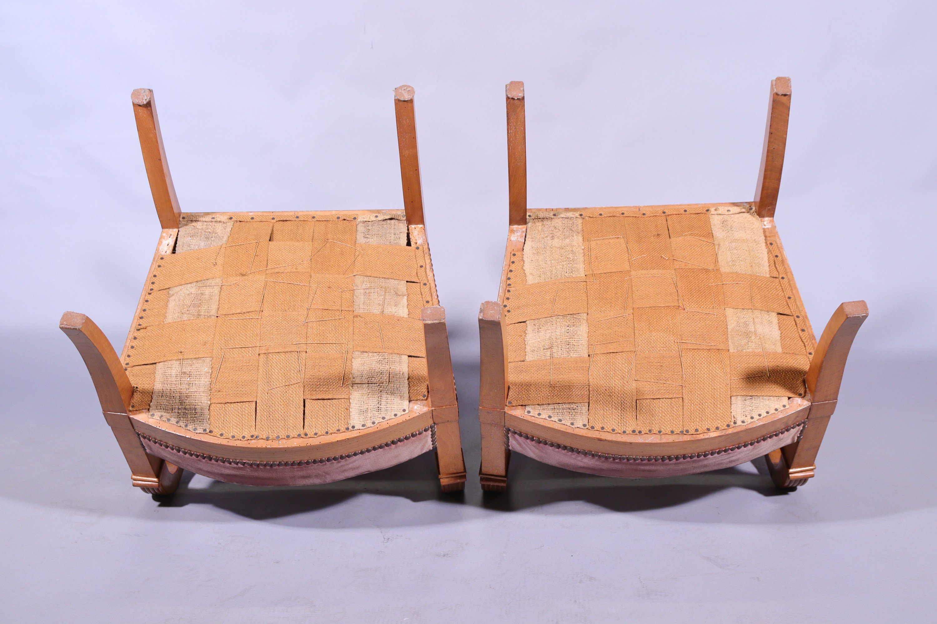 en merisier et placage de merisier. Le dossier cintré, les accotoirs terminés par des cannelures. Quatre pieds sabres.