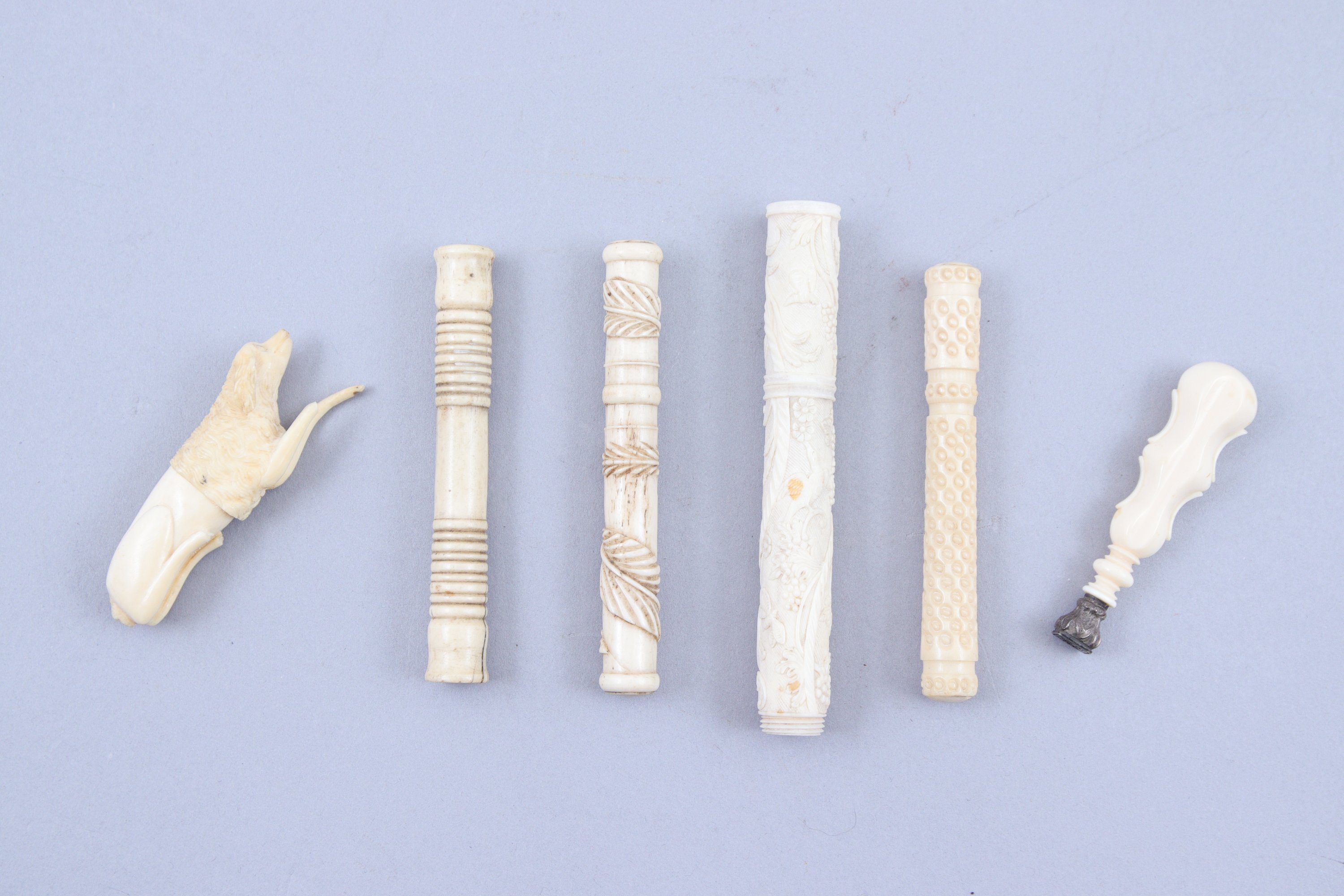 - Quatre porte-épingles en os. Long. Entre 9 et 10,5 cm.