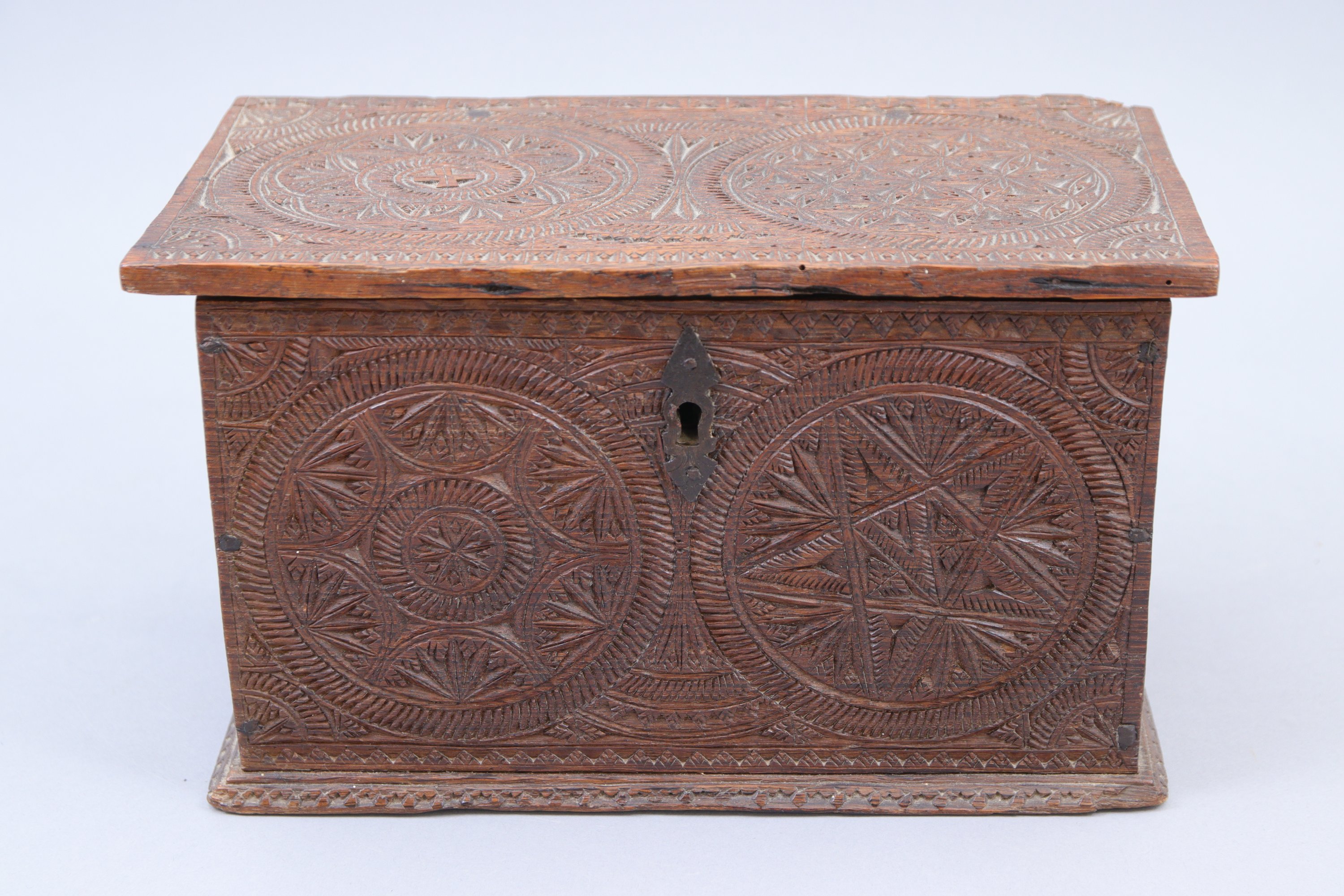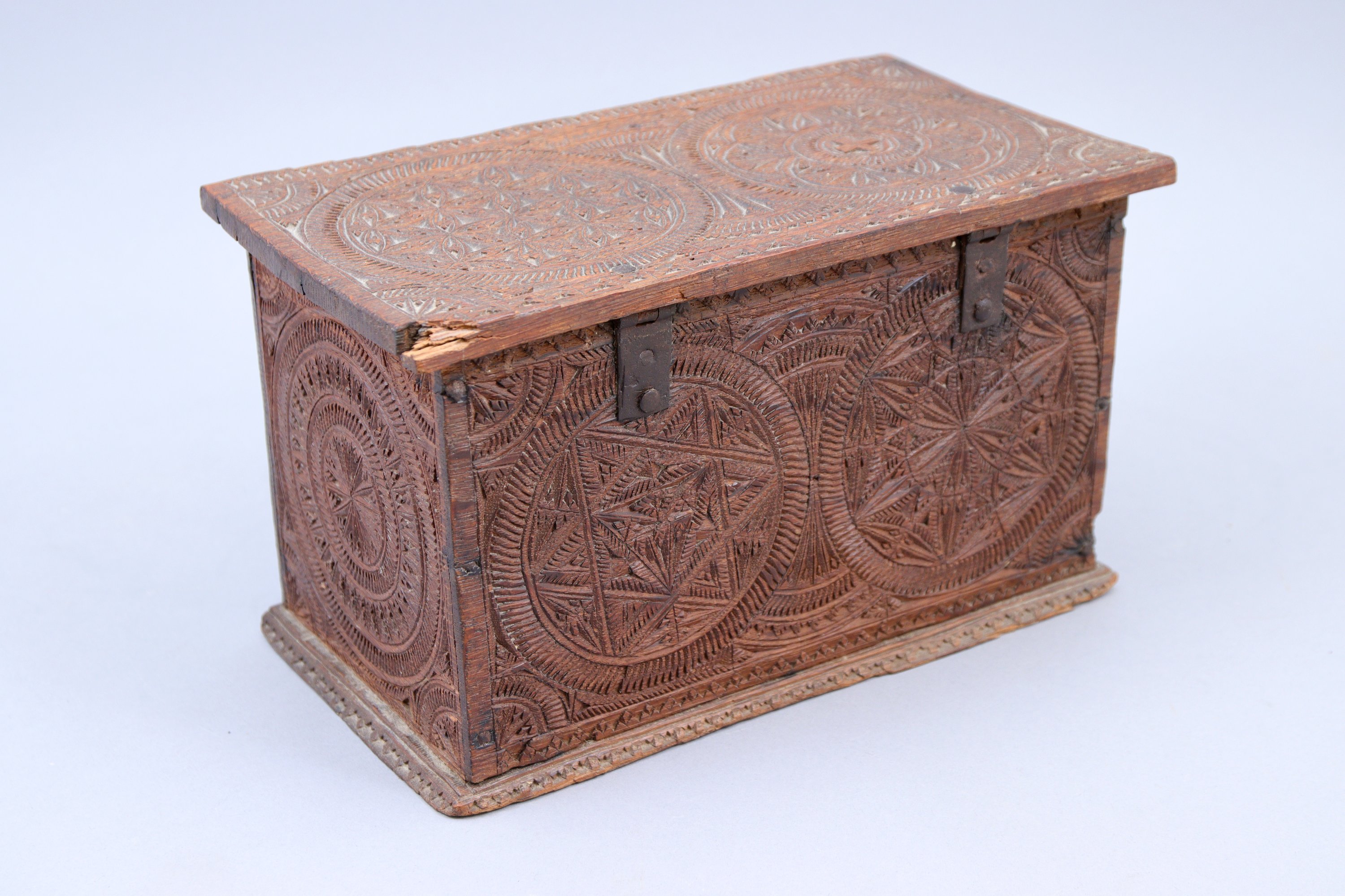 Travail populaire ancienCoffret de messager en bois gravé sur toutes ses faces de mandalas dans...