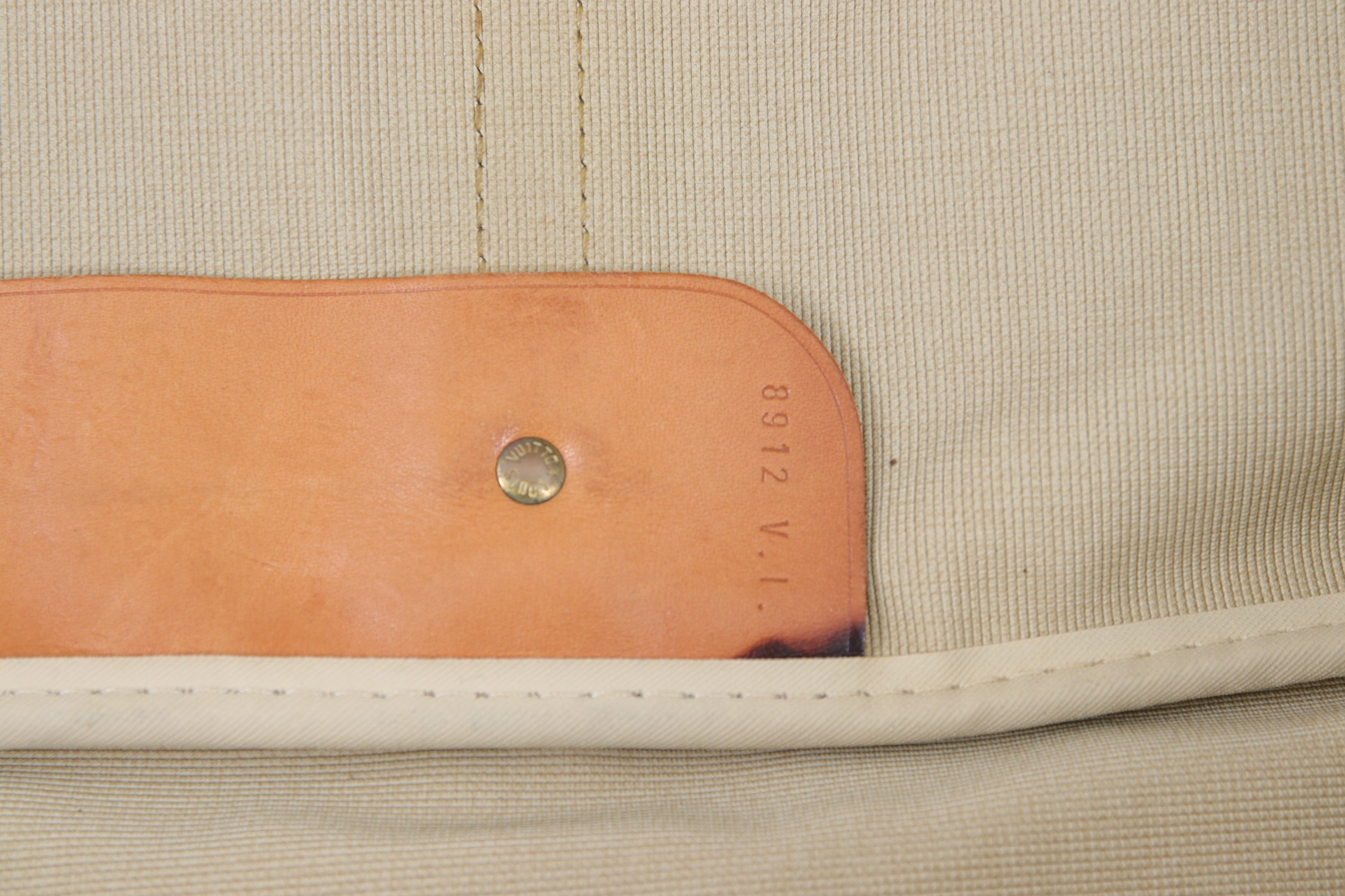 en toile enduite monogrammée et cuir fauve. Cadenas.