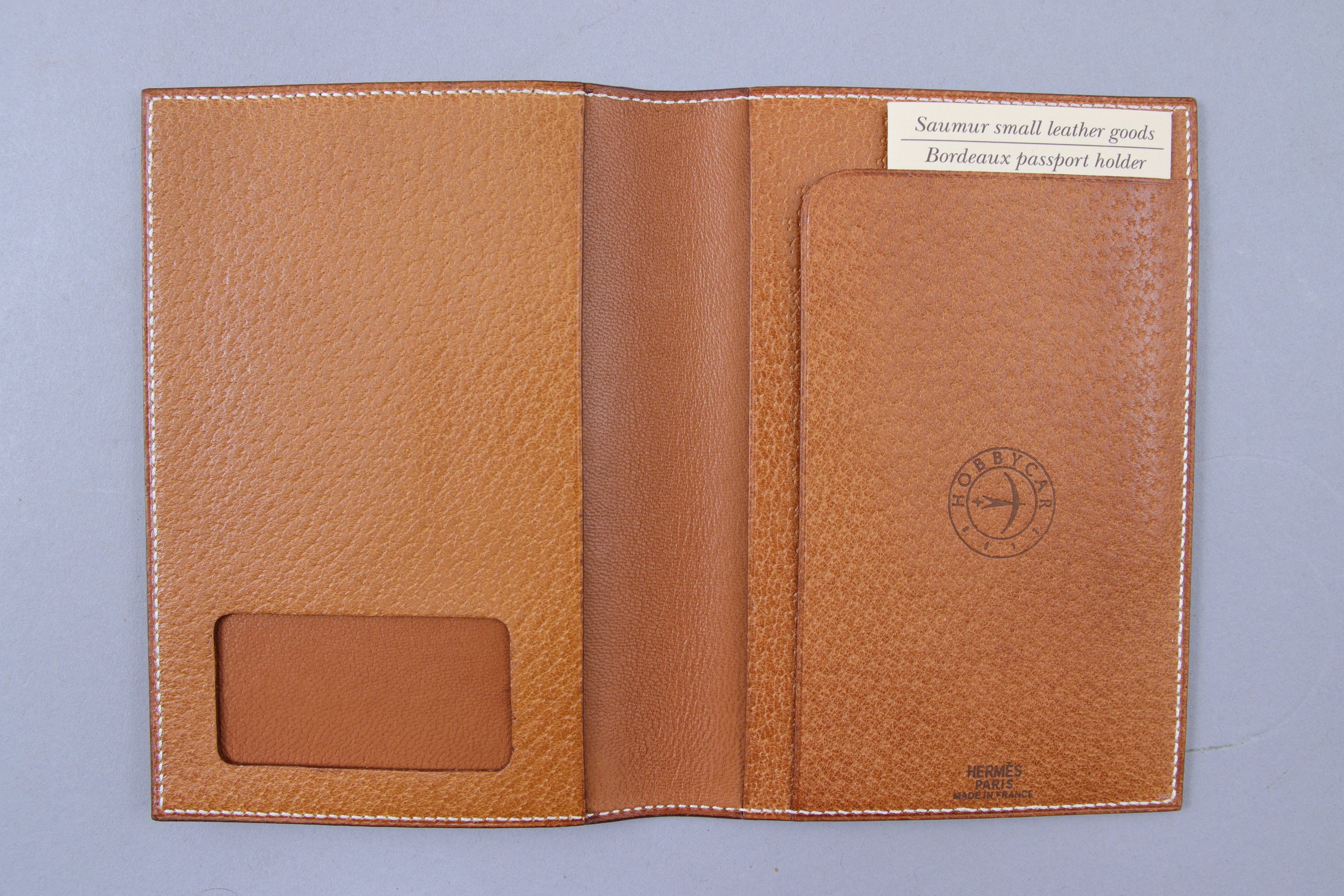 en cuir fauve à surpiqûre sellier, marqués "Hobby-Car" sur le rabat intérieur.
