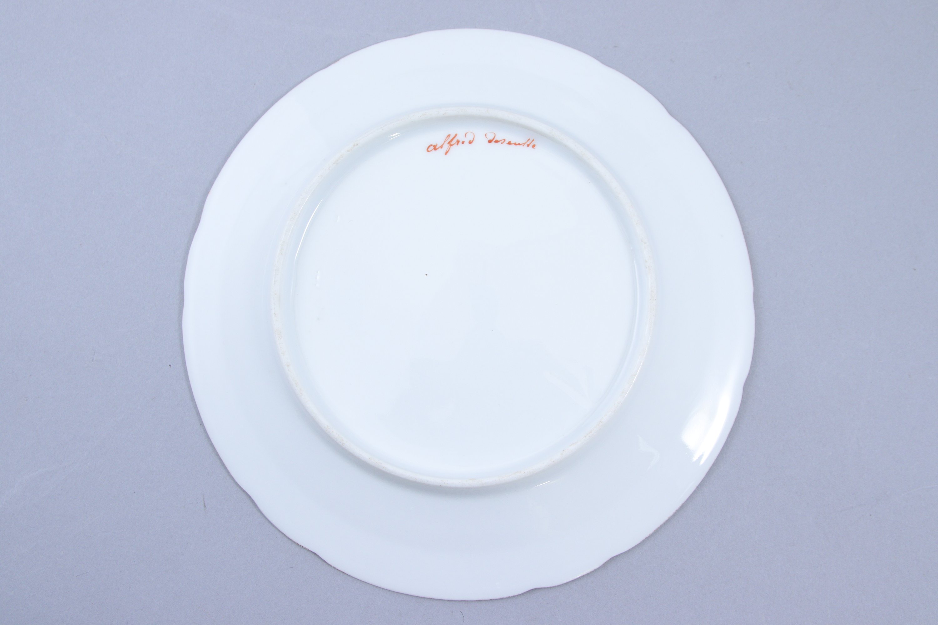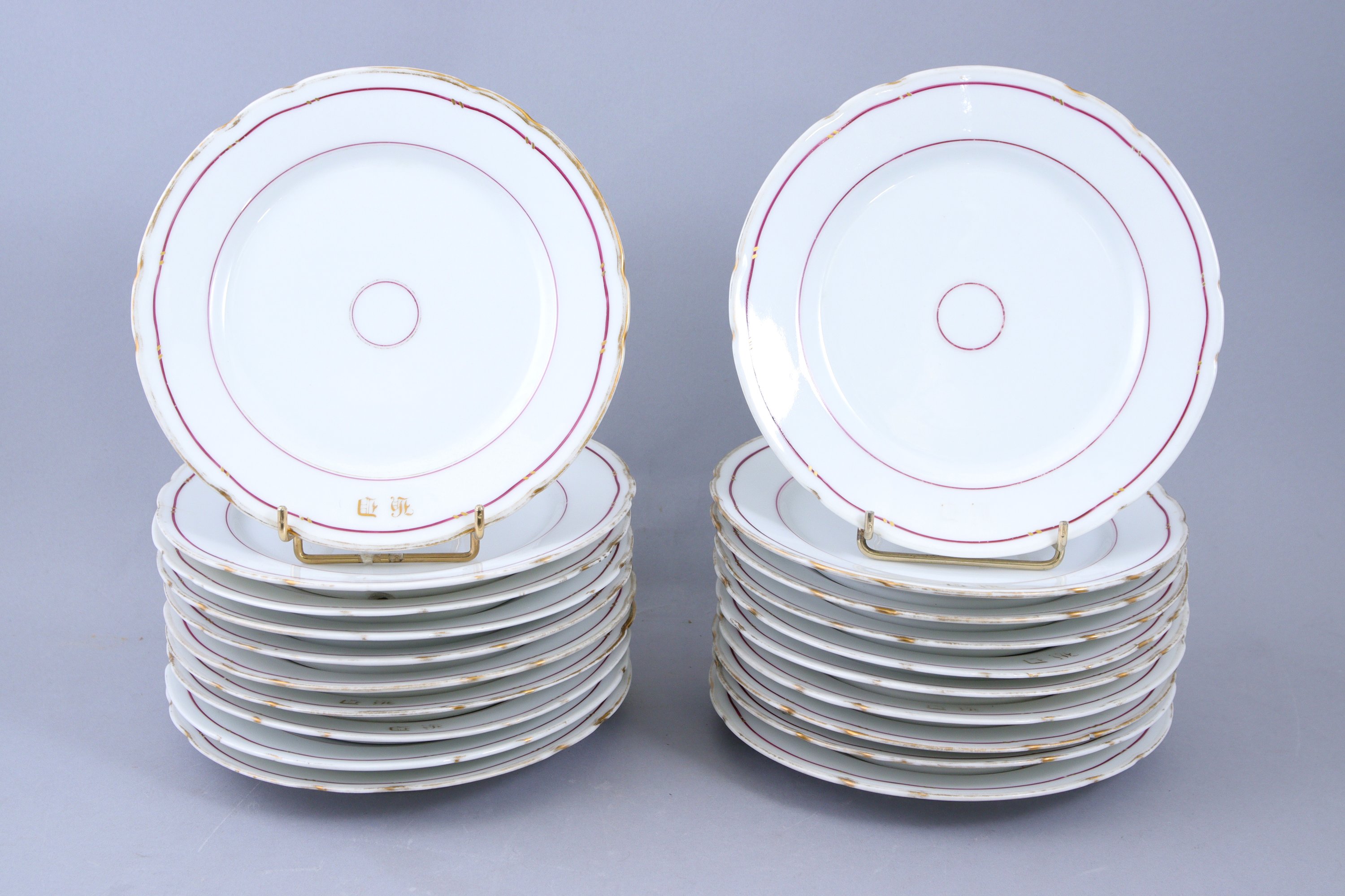 en porcelaine blanche et filet carmin. L'aile à bords contournés et monogrammée "HD".