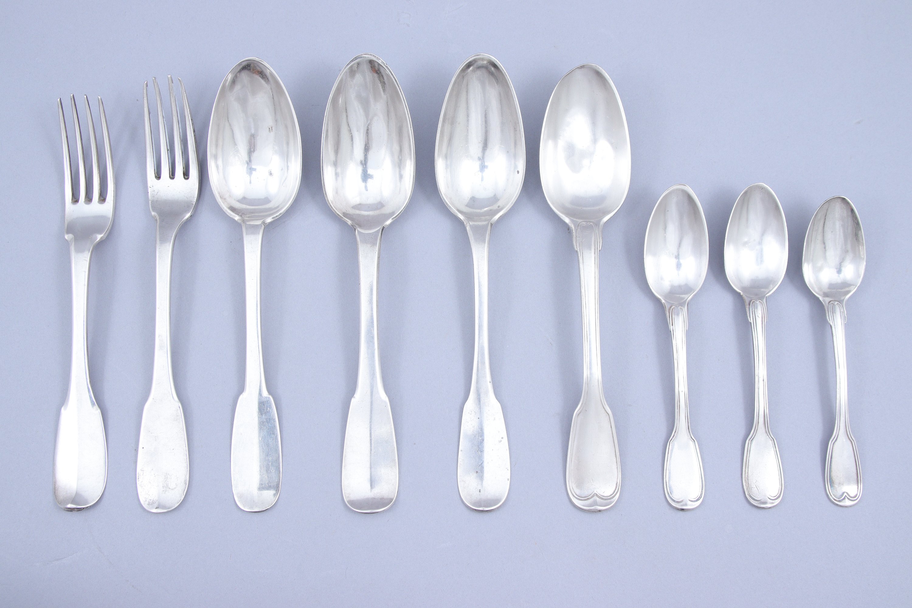 Deux fourchettes de table, quatre cuillers de table et trois cuillers à café