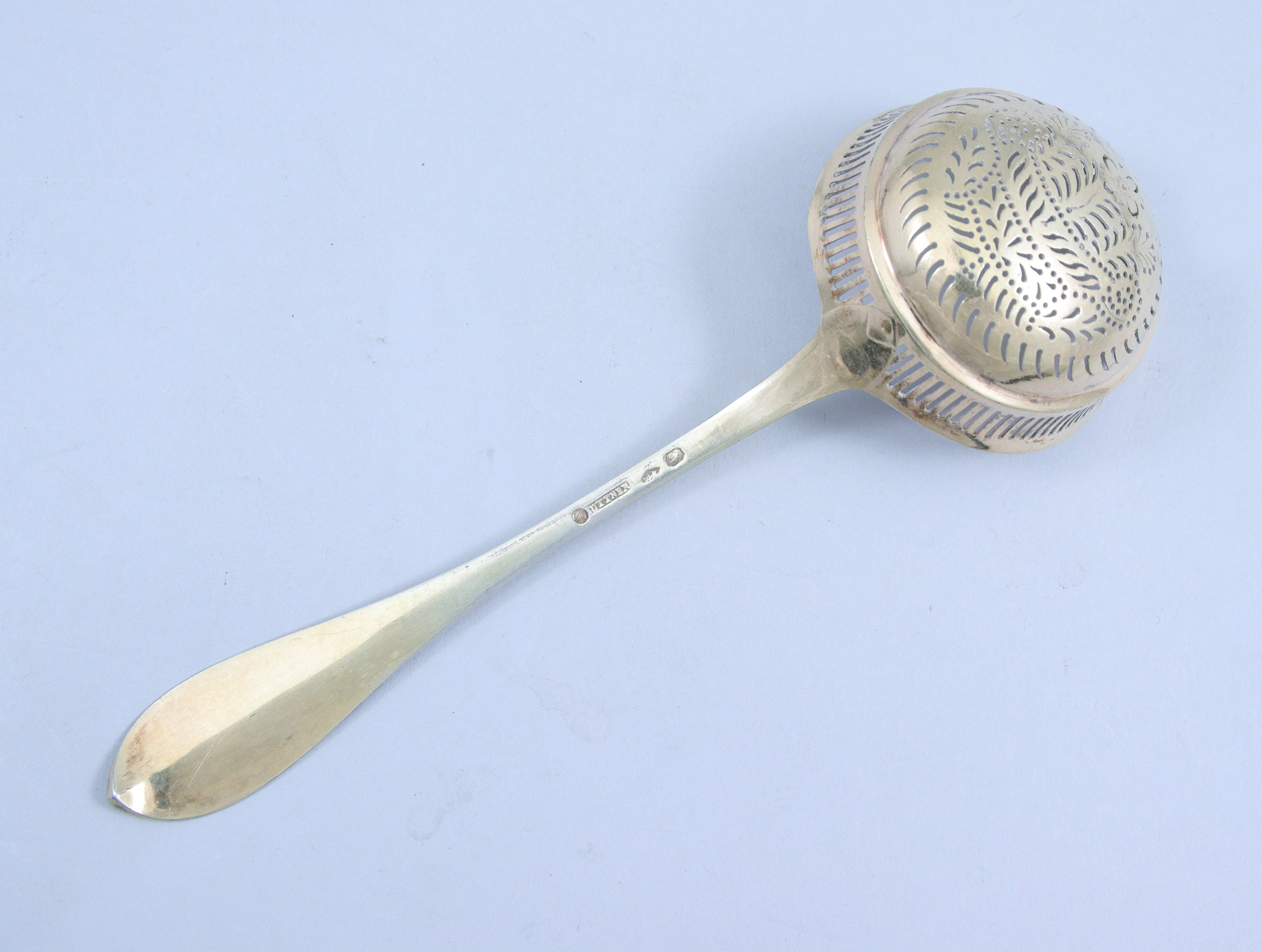 en vermeil, modèle uniplat, le cuilleron à décor d'un panier fleuri.