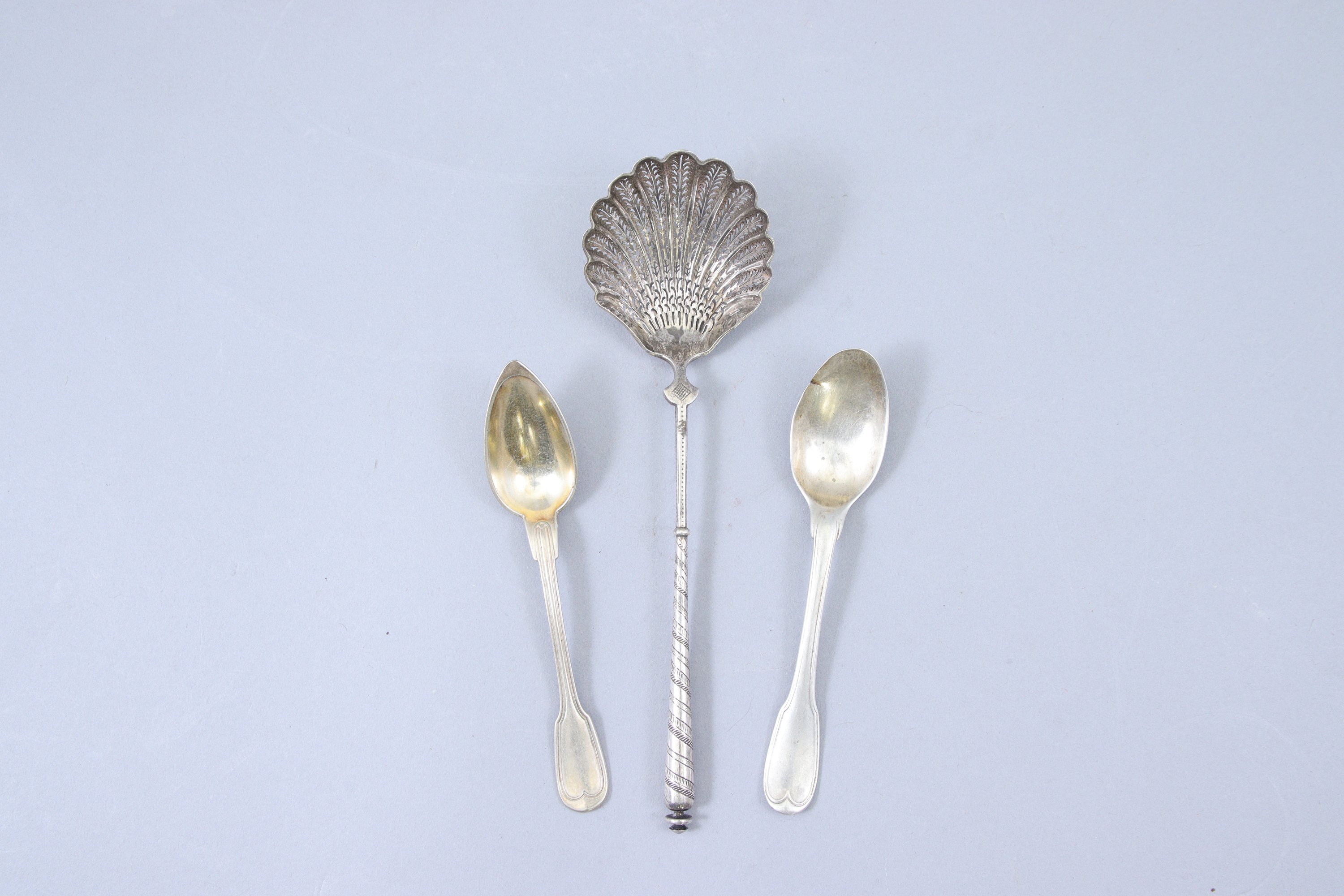 - Une cuiller à café en argent, poinçons des Fermiers Généraux. Poids 31 g (accidents).