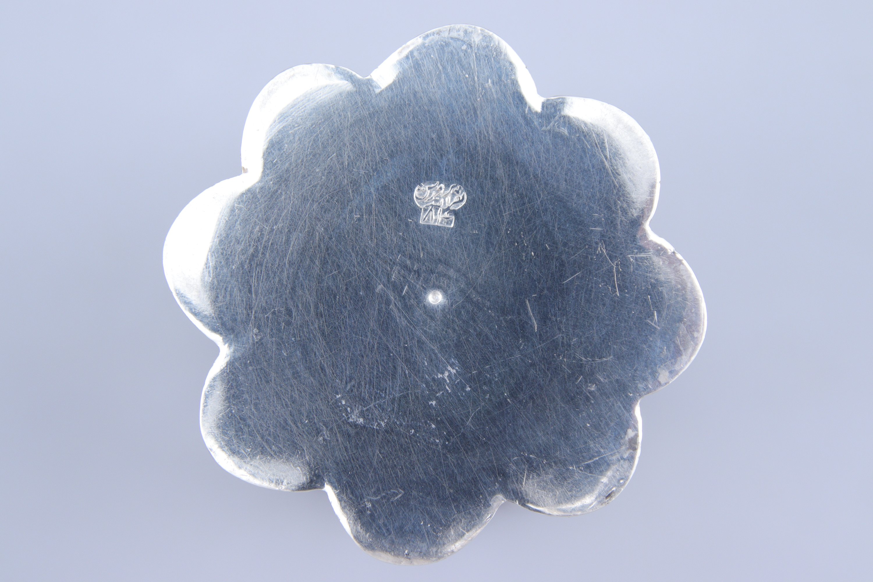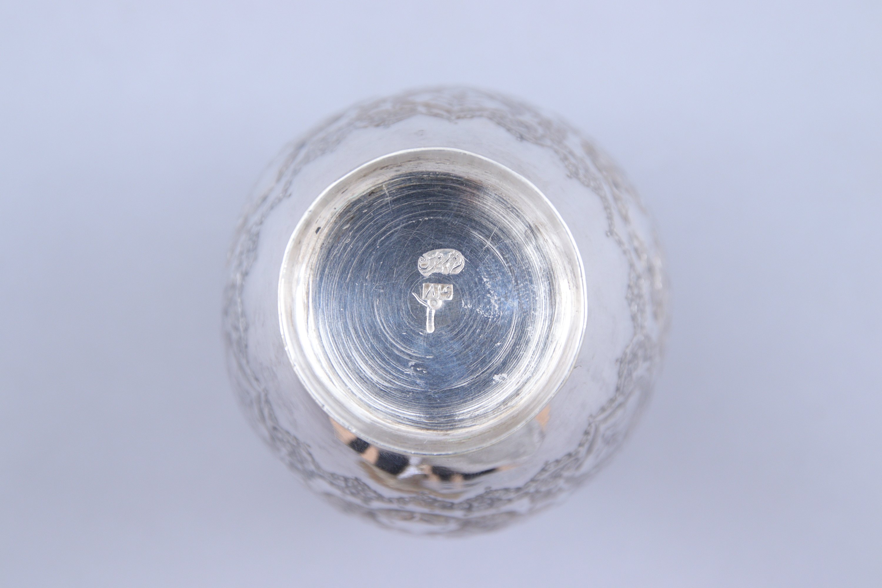 - Le second de forme balustre à décor de réserves dans lesquelles sont inscrits des oiseaux entourant des motifs végétaux. Haut. 12,8 cm. Poids 160 g.