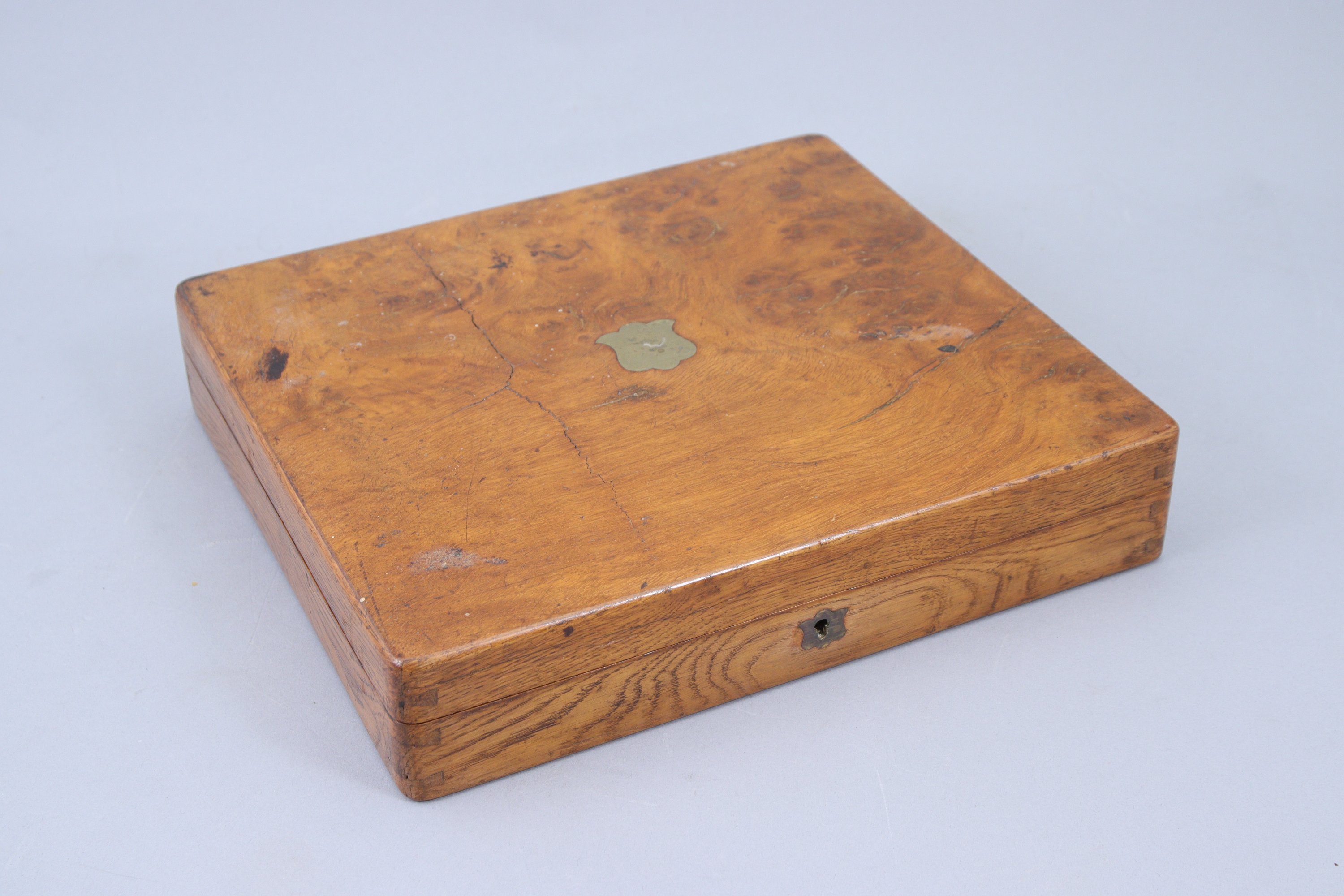 Dans un coffret en bois centré d'un cartouche en laiton et intérieur en tissu et velours bleu.