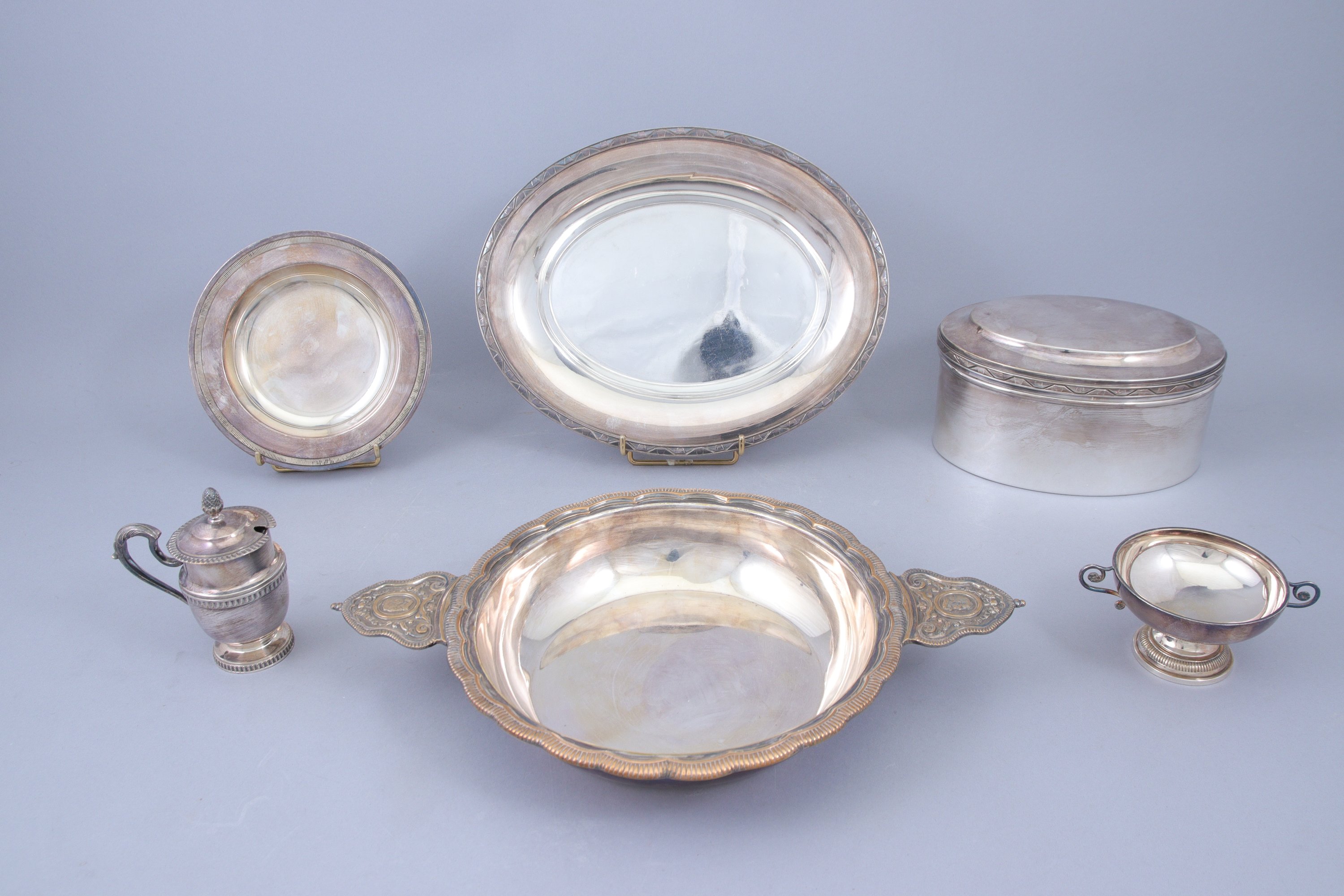 Une coupe de mariage bourguignonne, une écuelle à oreilles, une boîte, un dessous de bouteille et un plat oblong
