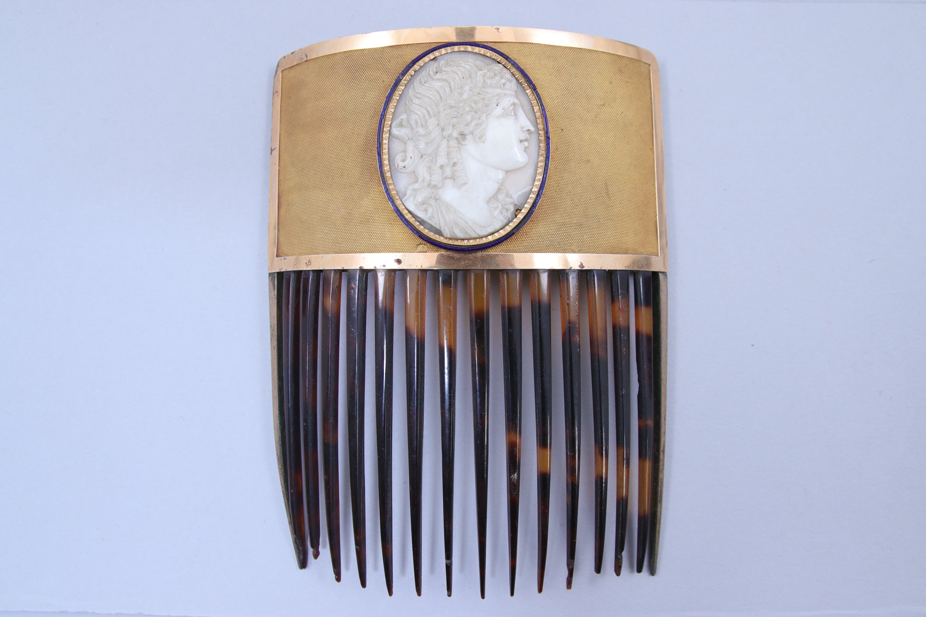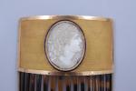 en vermeil et écailles orné d'un camée au profil à l'antique dans un cerclage d'émail bleu.