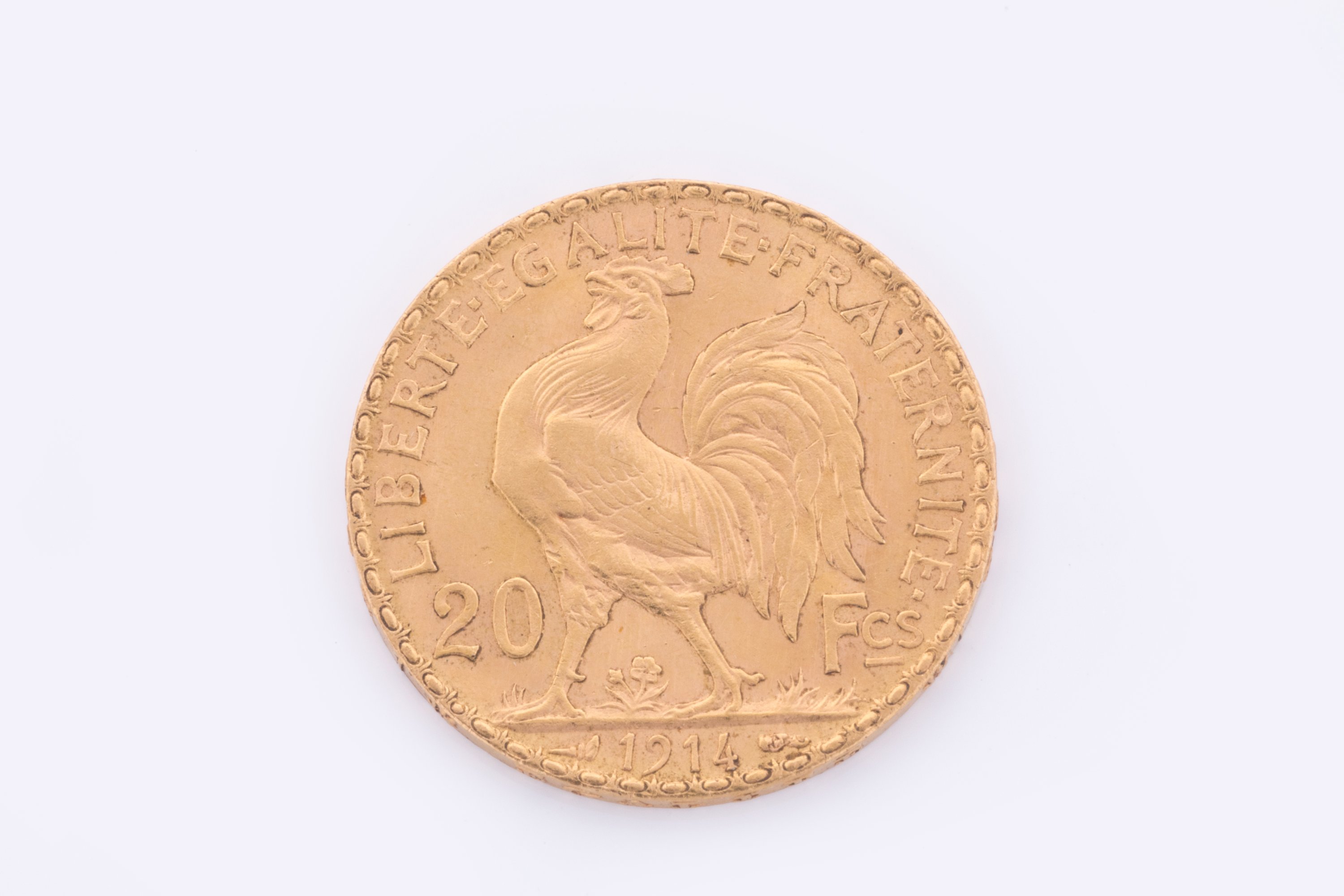 FRANCE. 1 PIECE de 20 FRANCS OR, Marianne, 1914.