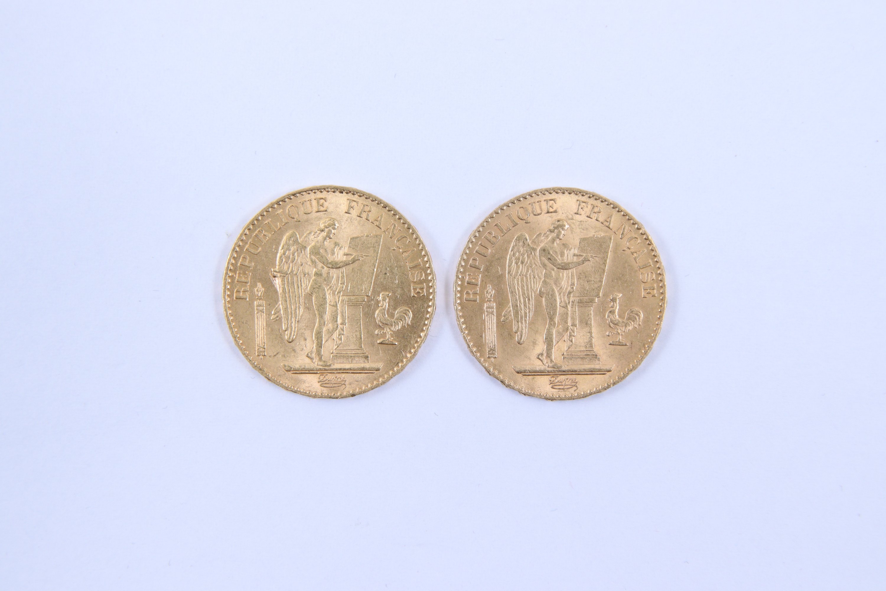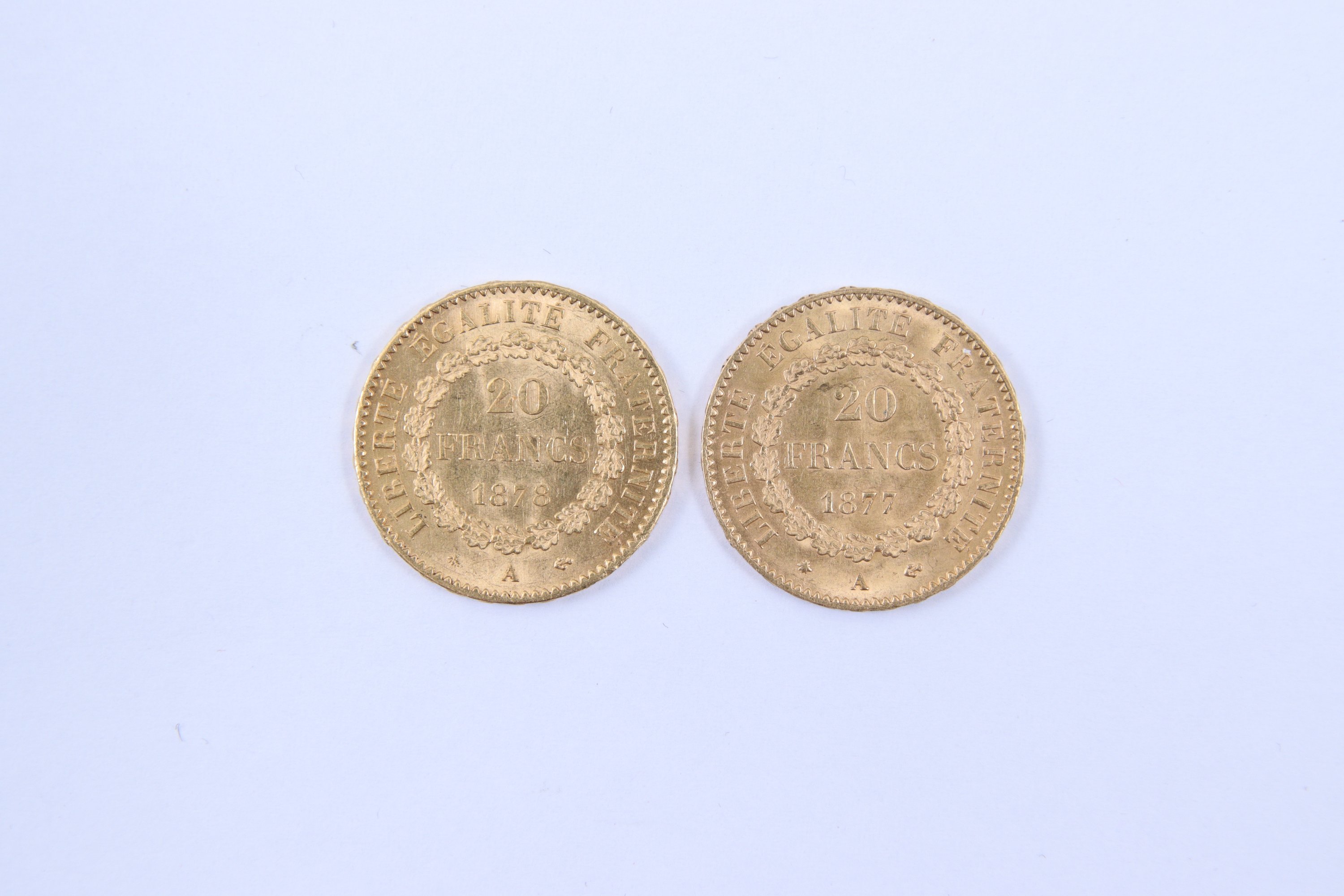 FRANCE. 2 x 20 FRANCS OR, Génie, IIIe République, 1877 et 1878.