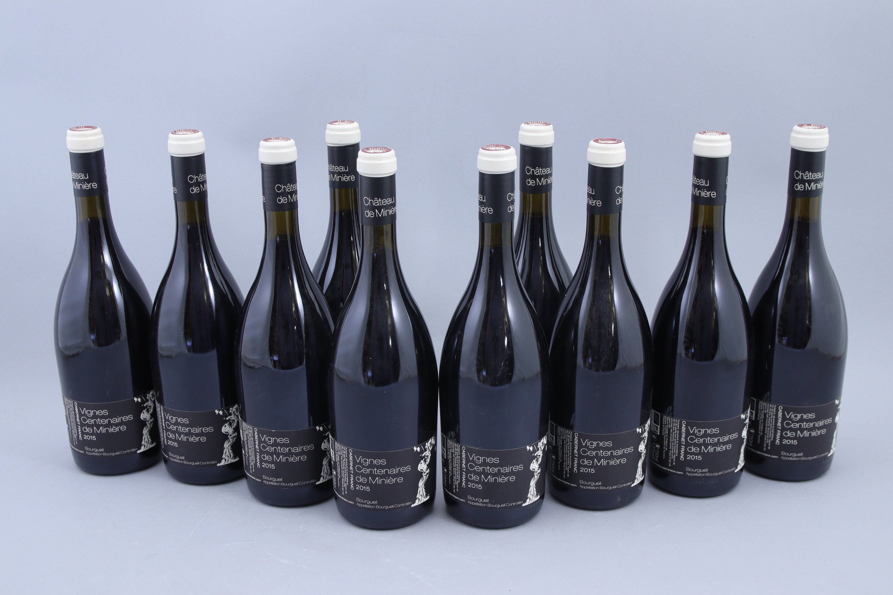 BOURGUEIL, Château de Minière vignes centenaires, 2015, 10 bouteilles. Niveau...
