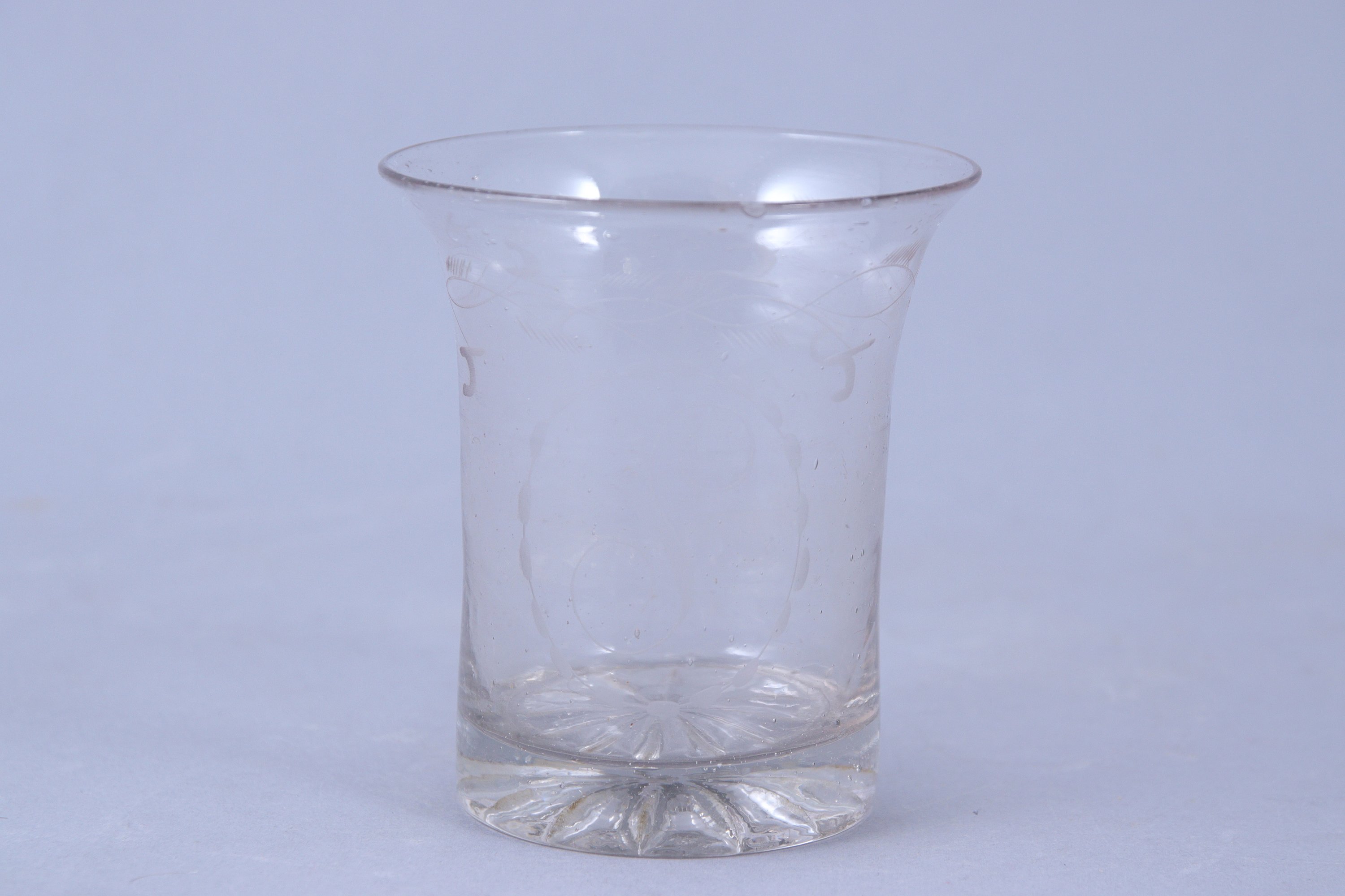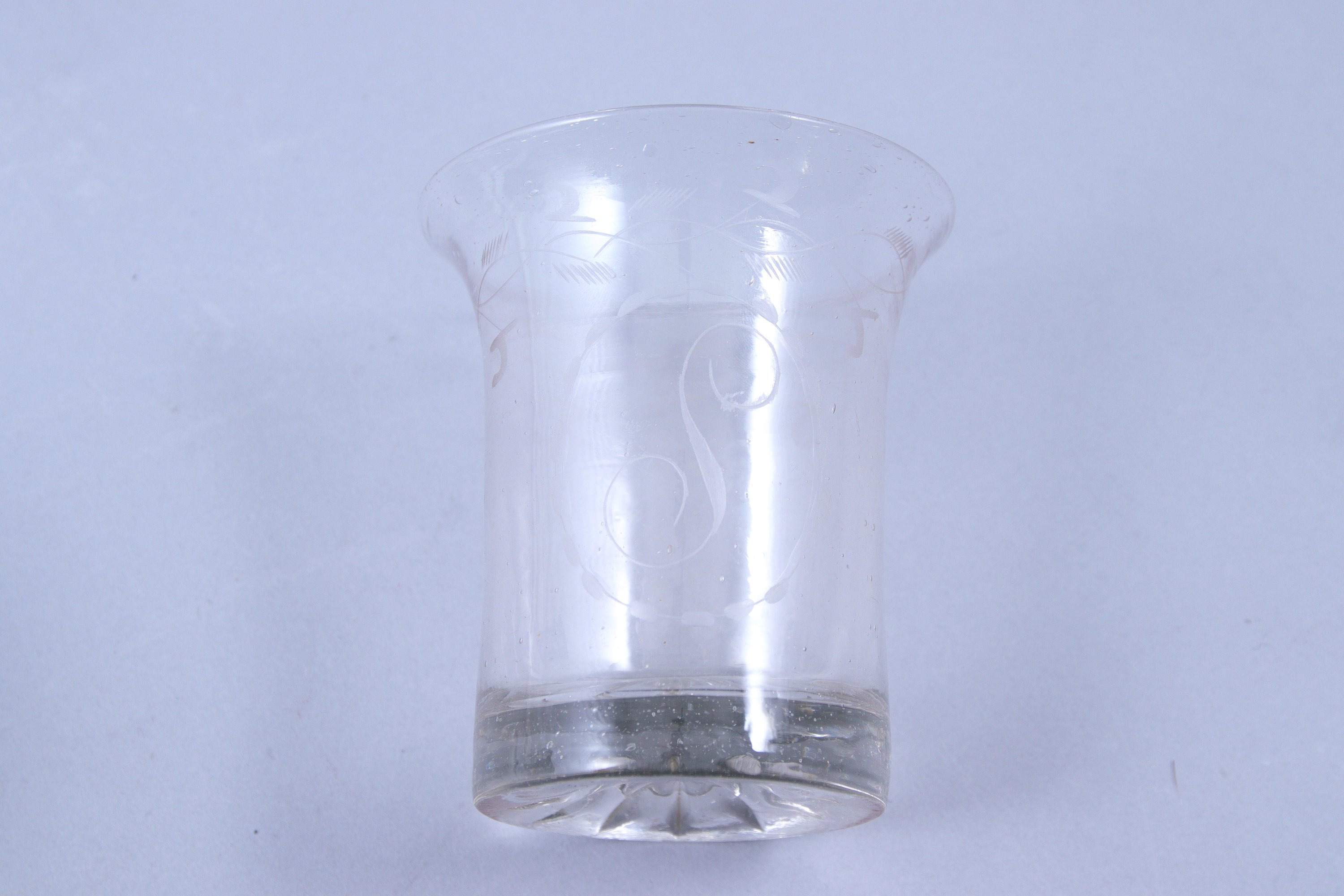 en verre à lèvre soulignée d'une frise et une initiale "S" dans un médaillon.