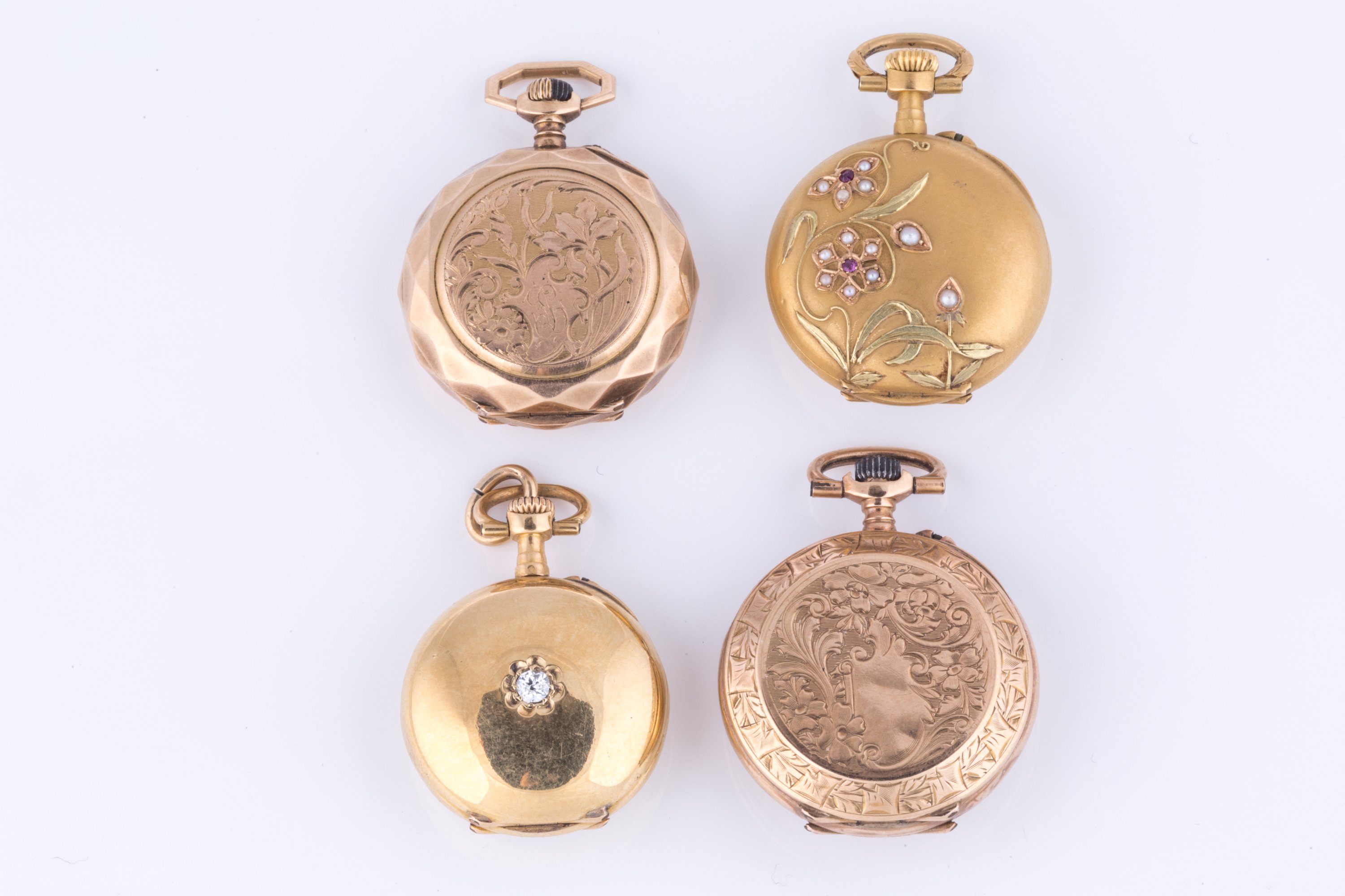 en or jaune 750 millièmes, le cadran émaillé blanc indiquant les heures en chiffres romains dans des cartouches. L’ensemble décoré de motif végétaux.