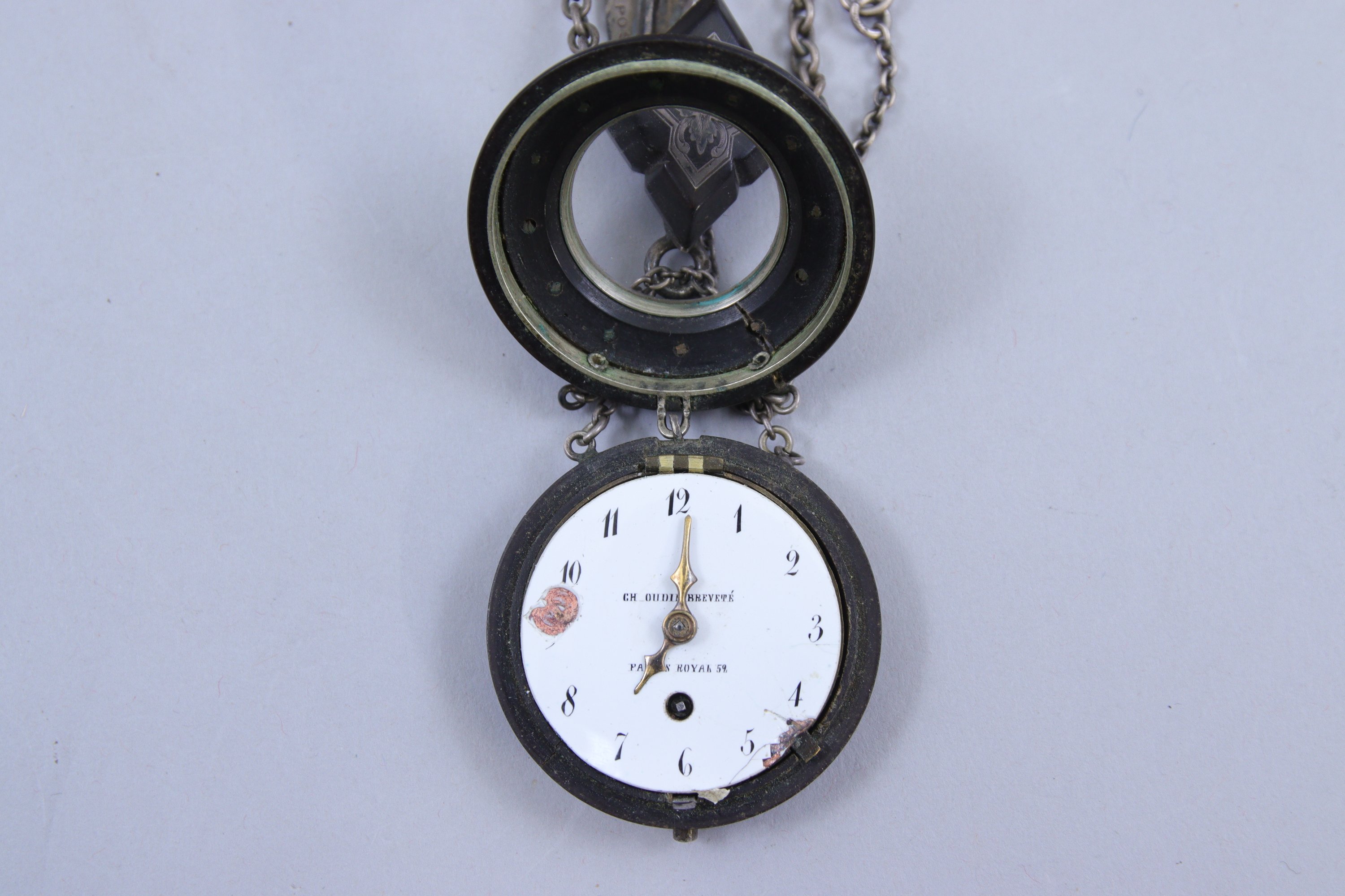 Rare montre de deuil ou de clergé avec sa châpelaine