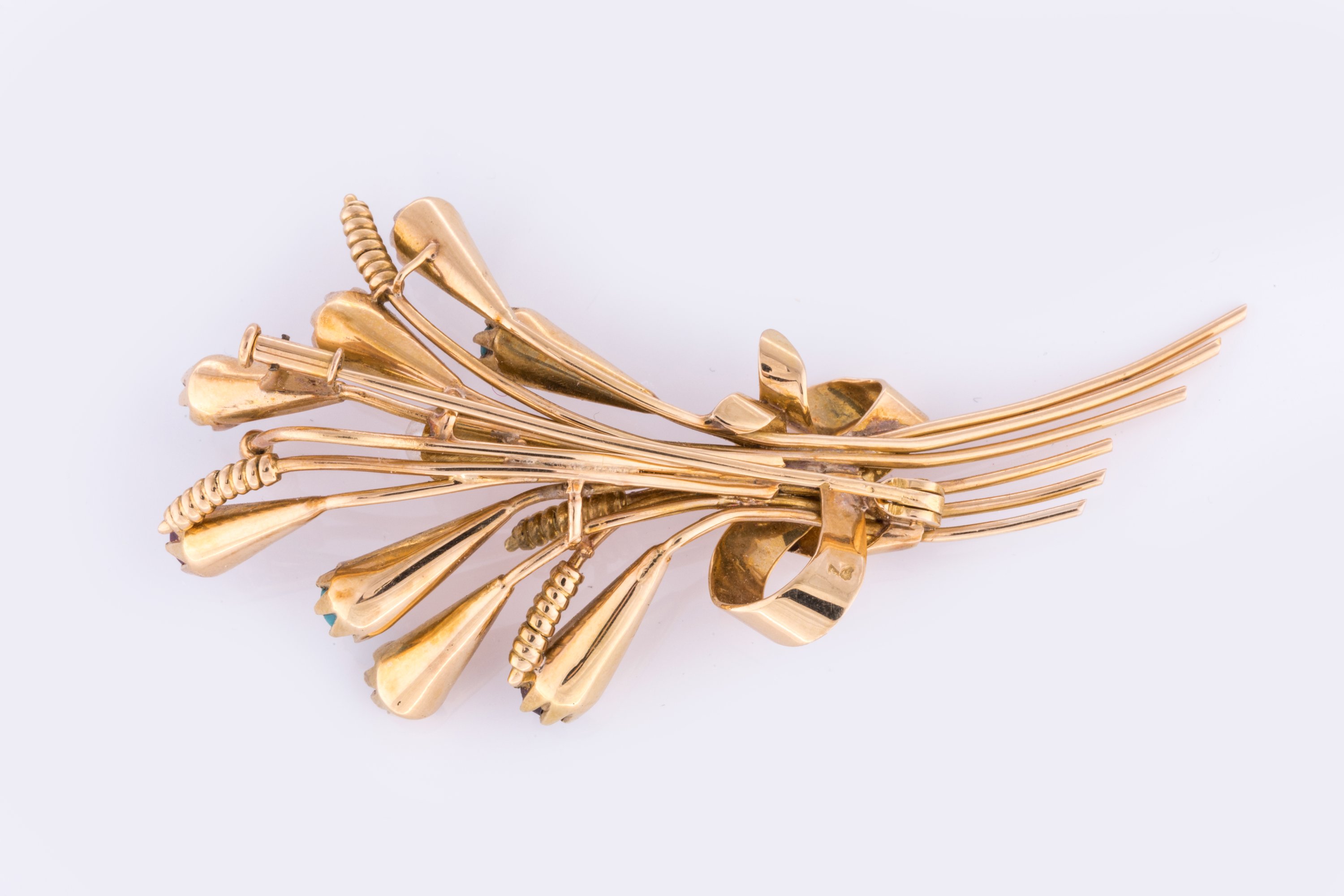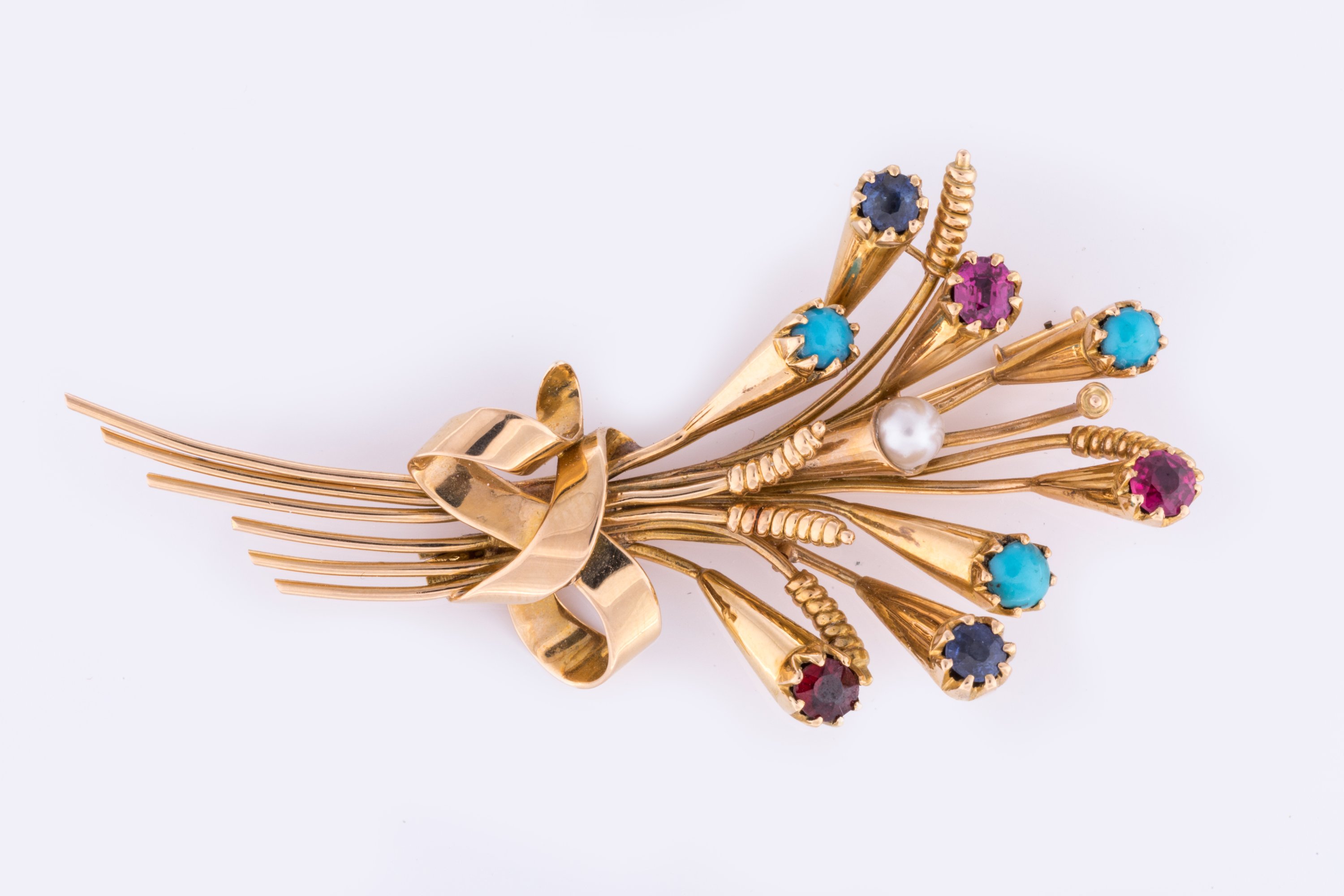 en or jaune 750 millièmes sertie d'une perle, turquoises et pierres fines.