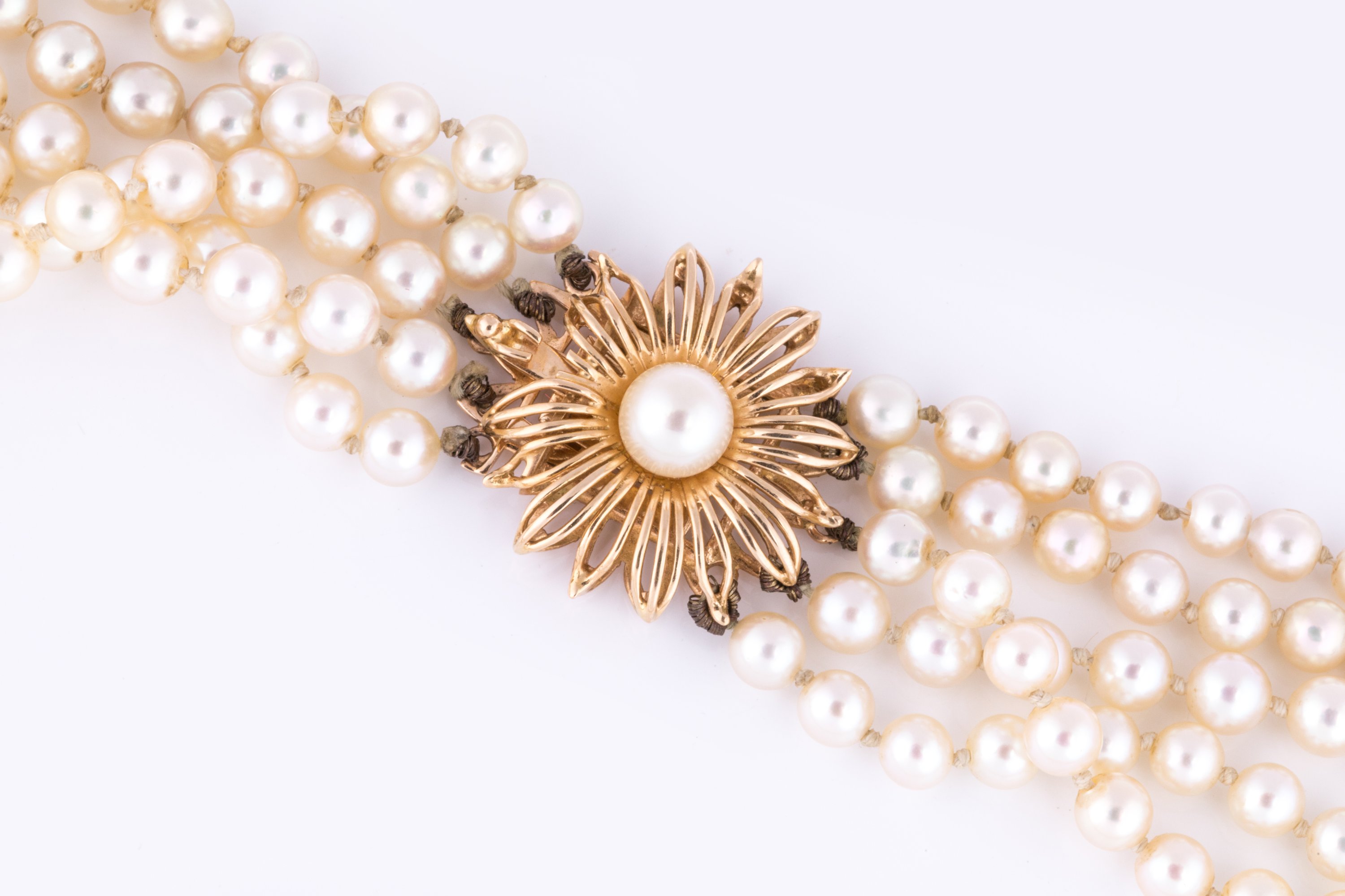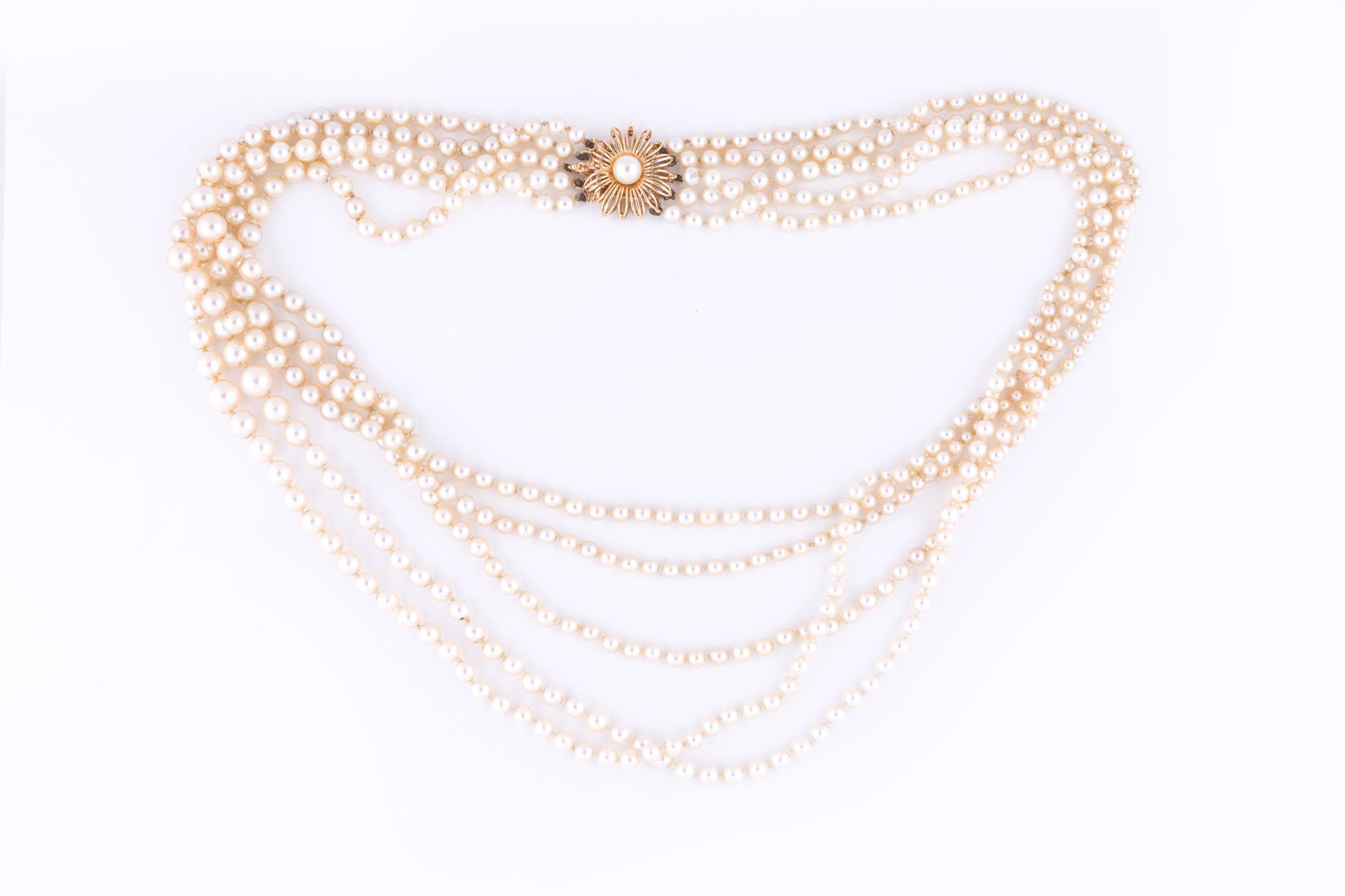 Collier cinq rangs de perles de culture en chute