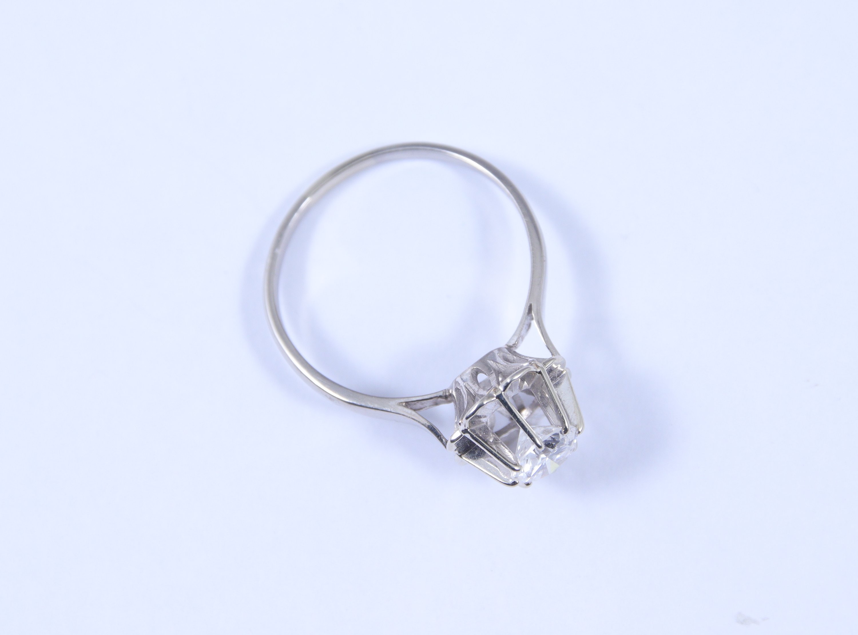 en or gris 750 millièmes, sertie d'un diamant de taille moderne d'environ 0,50/0,75 ct.